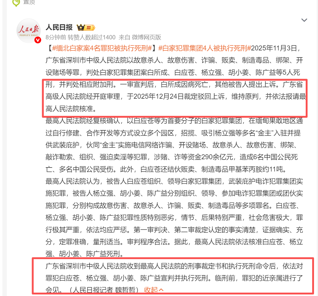 缅北白家案4名罪犯被执行死刑先是明家再是白家,留你们过年?做梦!
