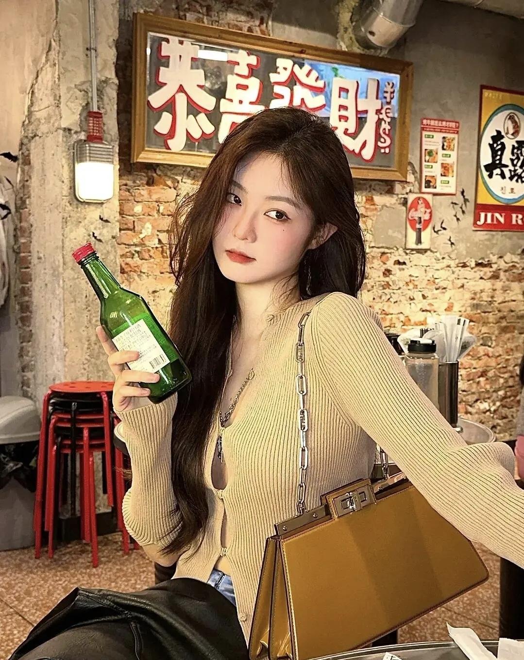 复古风咖啡馆,手捧绿瓶,时尚穿搭,少女心满满!💚📸