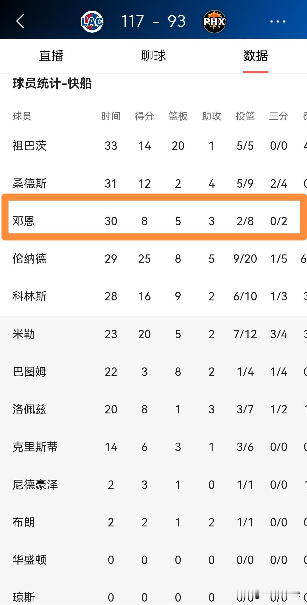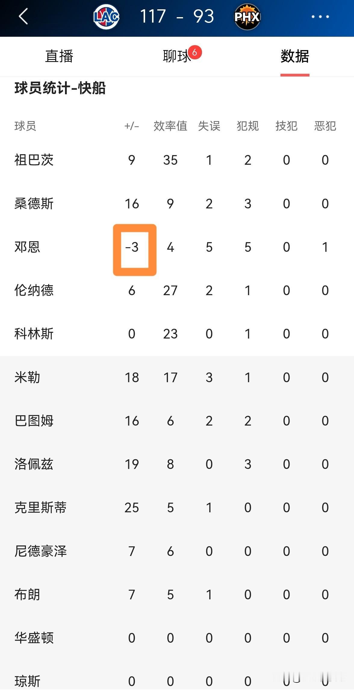 快船大将邓恩真是太丢人现眼了!今天快船在客场以117:93大胜太阳,值得注意的是,在这场酣畅淋漓的大胜中,邓恩的场上正负值竟然是负值,而且是全队唯一的负值。 全场比赛下来,邓恩首发出战30分钟,投篮8中2,其中三分球2中0、罚球5中4得到8分,还有5次失误和5次犯规,他的场上正负值为全队最低的-3。 老实说,从邓恩本场比赛的场上正负值来看,邓恩在攻防两端的表现都是非常糟糕的。