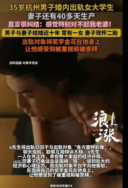 杭州一位35岁男子的“树洞倾诉”引发了全网热议他在妻子二胎孕晚期出轨了一名女大学
