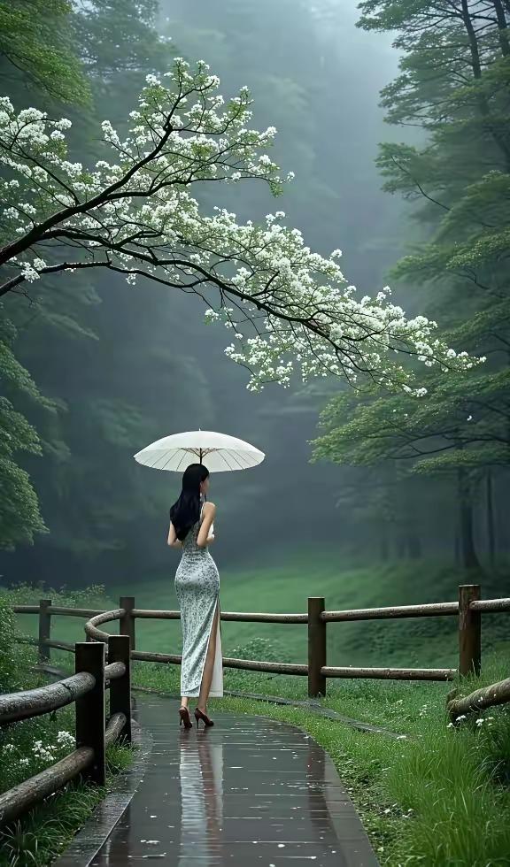 优雅旗袍,雨中漫步,古典韵味,尽显东方之美。