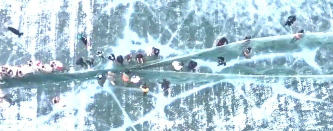 冰封的河面上,自驾游客用镜头定格原始杏林的冰雪秘境,蓝冰之上的徒步者仿佛踏入了冰雪童话。千人共享的热粥驱散了严寒,巨型雪滑梯上的尖叫、冰上自行车的嬉闹、雪地天使的欢笑,让冬日瞬间沸腾。从静谧的自然奇观到热闹的冰雪狂欢,这个冬天,人们在北国的纯白里,把冷冽过成了藏不住的欢喜。