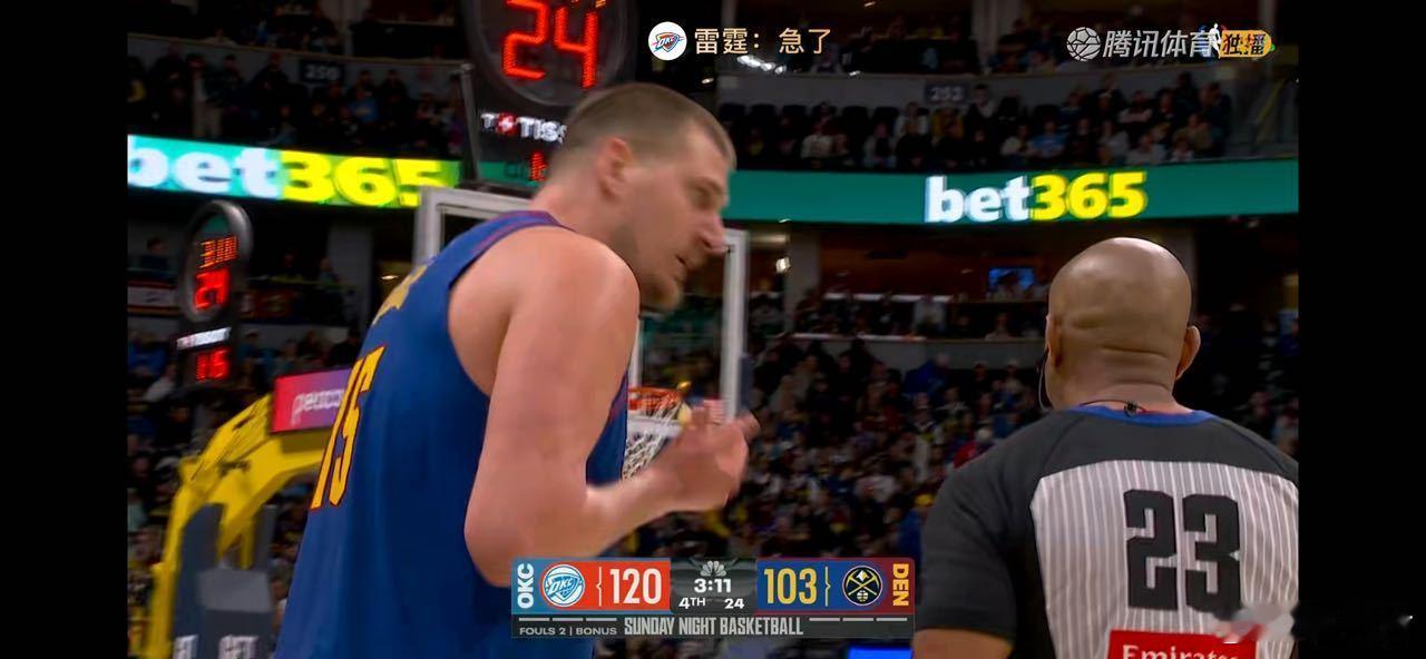 掘金超级巨星约基奇真是愁坏了!在今天掘金主场迎战雷霆的比赛中,当时比赛进行到了第