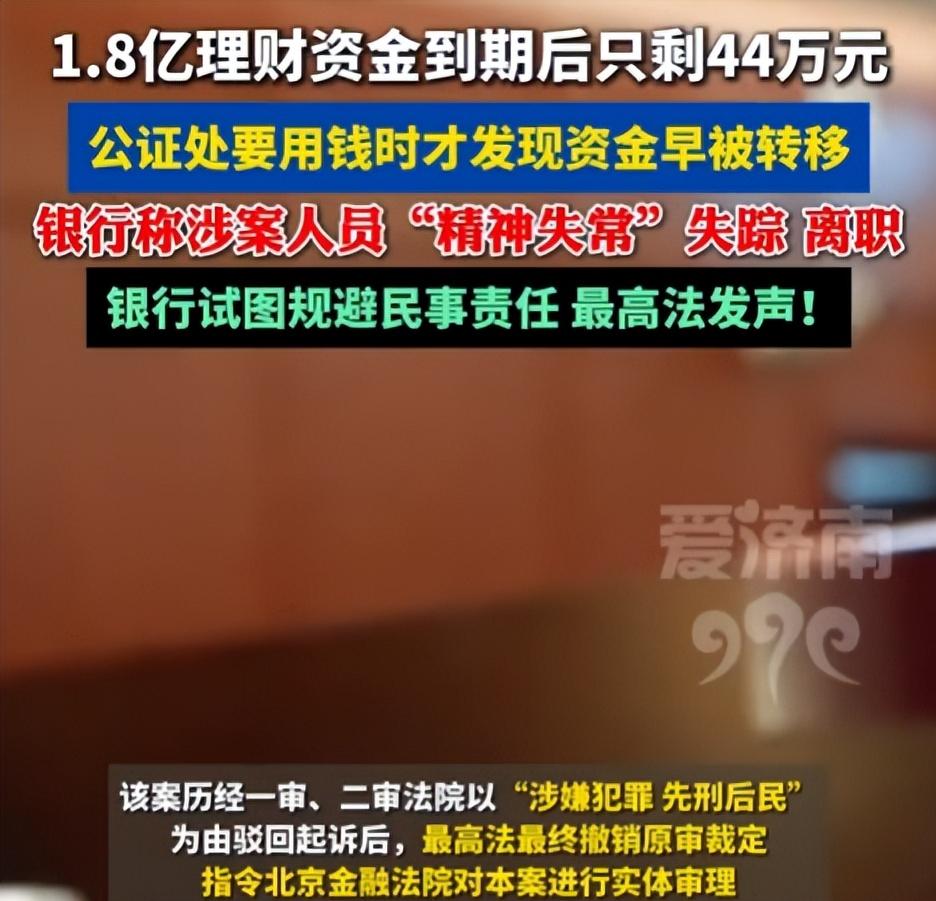 北京,有一家公证处,在某银行北京分行存了1.8亿,要用钱时发现账户里只剩了44万本息,更怪的是,5年的银行对账单都正常。原来是资金早被转走,银行不认账,还甩锅给精神失常且失踪的涉案职员,客户经理也离职。公证处无奈只能起诉,一审二审被驳回,案子最终打到最高法。 这家公证处在当地还算有点名气,业务多资金也多,2013年底,他们在银行北京分行开了一个对公账户,专门用于业务资金的进出。 开始这几年,账户里陆陆续续存入了不少资金,一共进账达到3.6亿,账户由一位叫李某的银行客户经理在负责。 李某跟公证处的对接很频繁,每个季度都会主动带着对账单上门服务,账单上盖有银行公章,金额余额清楚明了,看上去一切都很有条理公正,公证处也就相信了。 从2014年开始的五年时间里,这些资金竟然被陆续转移到9家陌生公司和两个个人账户上。 这9家公司和两位个人是什么背景、公证处一概不知,直到后来案发之后才发现,这当中竟然还有人和银行内部有关联。 2018年时,在账面显示仍有1.8亿的情况下,公证处决定买理财,图的是多点收益,理财产品也是在这家银行购买的,按照以往经验,公证处认为这只是一个普通的理财操作,一点风险都没有。 等到产品到期,准备取现兑现收益时,账户里竟然只剩下44万,顿时脑子就炸了。 急忙跑去银行查询,结果根本查不到当初那笔1.8亿的理财资金的真实流向。 银行的回应更让人瞠目,一开口就说是李某的问题,说他精神出了问题,已经不知道去了哪里。 另一个可能涉及此事的职员也离职了,用银行的话讲,这些都是个人行为,银行方面并不知情。 这种解释让人一头雾水,这么大一笔钱,说没就没,还说你不知道,说只是员工的问题,那客户的钱放在银行还有什么保障? 最让人感到无奈的是,这五年间李某送的账单,都不是系统自动对账结果,而是盖了假章的。 表面看没任何问题,实际上账单根本不是系统出具的,只是作给公证处人员看的,而他们也确实没有起疑心,习惯性地信了。 公证处多次找银行交涉,对方态度强硬,坚称这是涉刑问题,银行只承担管理义务,没必要为职员个人行为买单。 无路可走之下,公证处选择走向法院,想要用法律手段维权。 一审法院认为,这里牵涉重大刑事犯罪,适用“先刑后民”原则,也就是要等刑事案件彻底审完,相关事实定性后,民事部分再说,于是驳回起诉。 二审法院延续一审的观点,同样驳回。 公证处人财两空,连起诉的资格都没了,只能继续申诉。 这个案子最终被提交到最高人民法院。 最高法一查才发现有问题,刑事和民事虽然有关联,但并不是同一事实。 刑事那块是追查职员有没有犯罪,民事部分则是看银行是否应该还钱,不能因为查犯罪就先不处理金融纠纷。 最高法明确撤销了一审及二审,指令北京金融法院重新开庭审理。 这才终于让事情重回正轨,银行绕不过去了。 从程序角度看,“先刑后民”在我国确实有法律依据,但不是什么案子都能搬出来用。 如果不能区分案件之间的本质不同,那就容易变成某些机构推卸责任的借口。 储户无论是企业、个人还是公证处,和银行之间说到底是一种契约关系,客户把钱交给银行,银行就得管好,不能钱没了,拿个解释就让人认栽。 涉案人员确实可能违法,但他们也是银行的在职员工,是工作手续中的一环,所做之事难以独立于银行的整体管理体系之外。 李某代表银行来服务,送来的账单令客户信以为真,这种行为背后有没有内外勾结,谁也说不准,但作为用人单位,银行必须承担相应责任,这是基本法理,不是感情问题。 银行要做的,不是推出几个职员挡枪,而是要给出合理清晰的处理方案,回应客户关切。 现在的舆论也不止是在问1.8亿去哪了,更重要的是信任去哪了。 把钱交给银行,本该是最稳妥的保管方式,如果连这都不能保障,金融体系的根基将不可避免地动摇。 这件事之所以能打到最高法才重审,很大程度上是因为储户是公证处,如果是普通人、小微企业,一审二审早就扛不住流程压力与资金耗费。 这也提醒大家,面对大机构尤其是金融机构拒不认责,社会个体维权仍然艰难,需要制度提供更多保障空间。 本案目前正在北京金融法院重新审理,还不会那么快出结果。 至于银行最终是否会承担全部或部分赔偿,不少人心里其实已经有预期了。 有人觉得银行要全赔,也有人认为公证处也有疏忽失察,但不管怎样,银行作为这个系统中的大玩家,管理失职是事实,逃不了干系。 你怎么看,银行到底该不该赔?赔多少合适?欢迎在评论区说说你的看法。