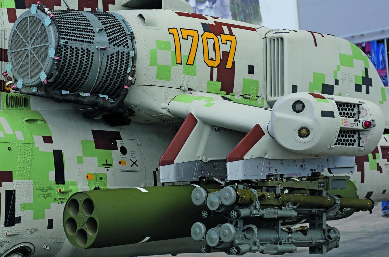 俄向伊朗交付“2018年型标准”米-28NE武装直升机。 该机型不同于此前的“2011年型标准”(印度)和“2013年型标准”(伊拉克、阿尔及利亚)。这款目前最新推出的米-28NE配备了新设计的橡胶自封外部油箱,搭载了全新的主旋翼系统,采用单台起飞模式额定功率达2400轴马力的克里莫夫VK-2500-01涡轴发动机。最高速度提升至314千米/小时,正常起飞重量增至11500公斤,最大起飞重量可达12100公斤。 同时,2018年型米-28NE还增加了挂载“菊花-VM”毫米波吊舱的能力,可引导新型9M123M“菊花-M”双模超音速反坦克导弹。并且,N-025E型桅杆式毫米波雷达也在可选配置中。 “2018年型标准”米-28NE武装直升机的电子设备改进包括配备升级型OPS-28M电光瞄准系统(对坦克的探测和识别距离提升至白天的10公里和9公里,及夜间的9公里和7公里)。加装“总统-S”综合防护系统,能够同时干扰两枚来袭的红外制导弹药。