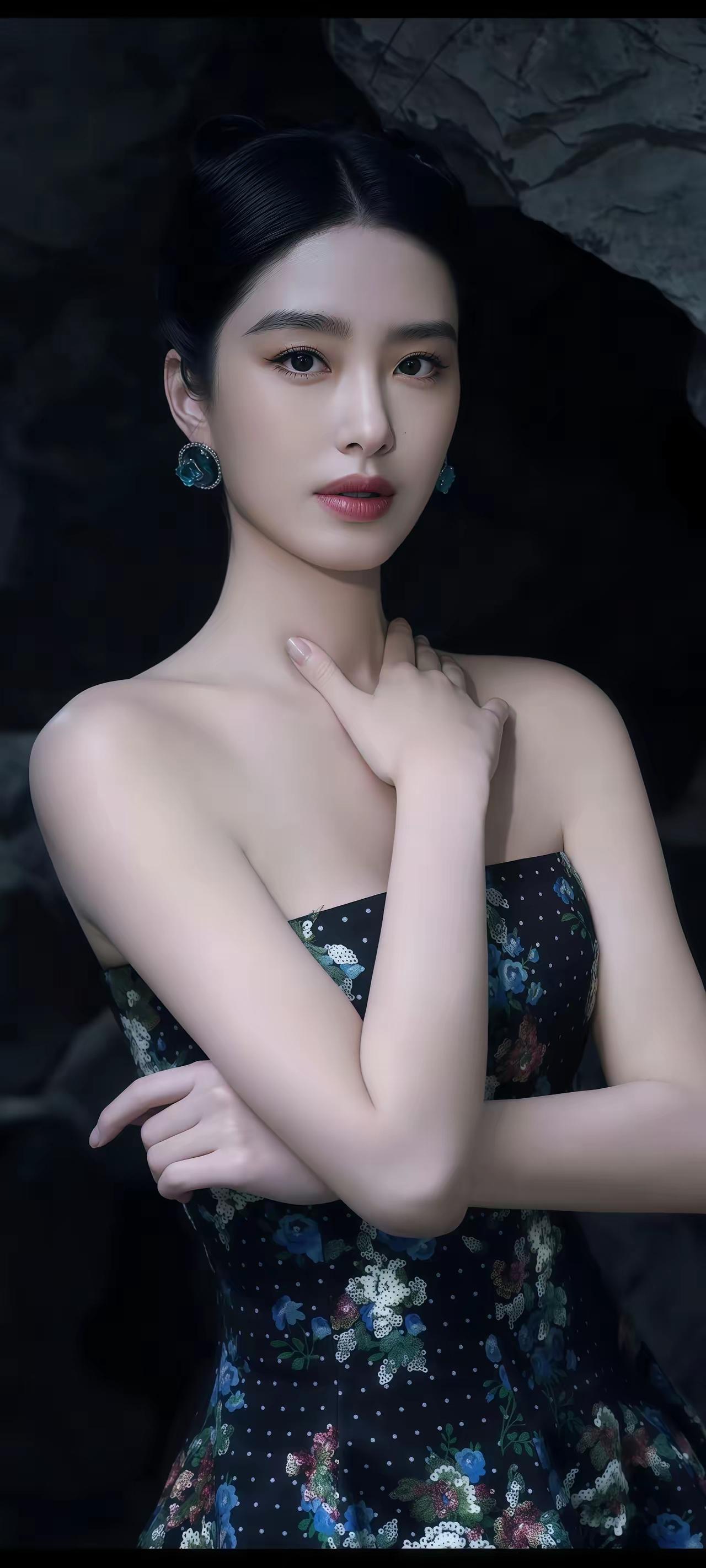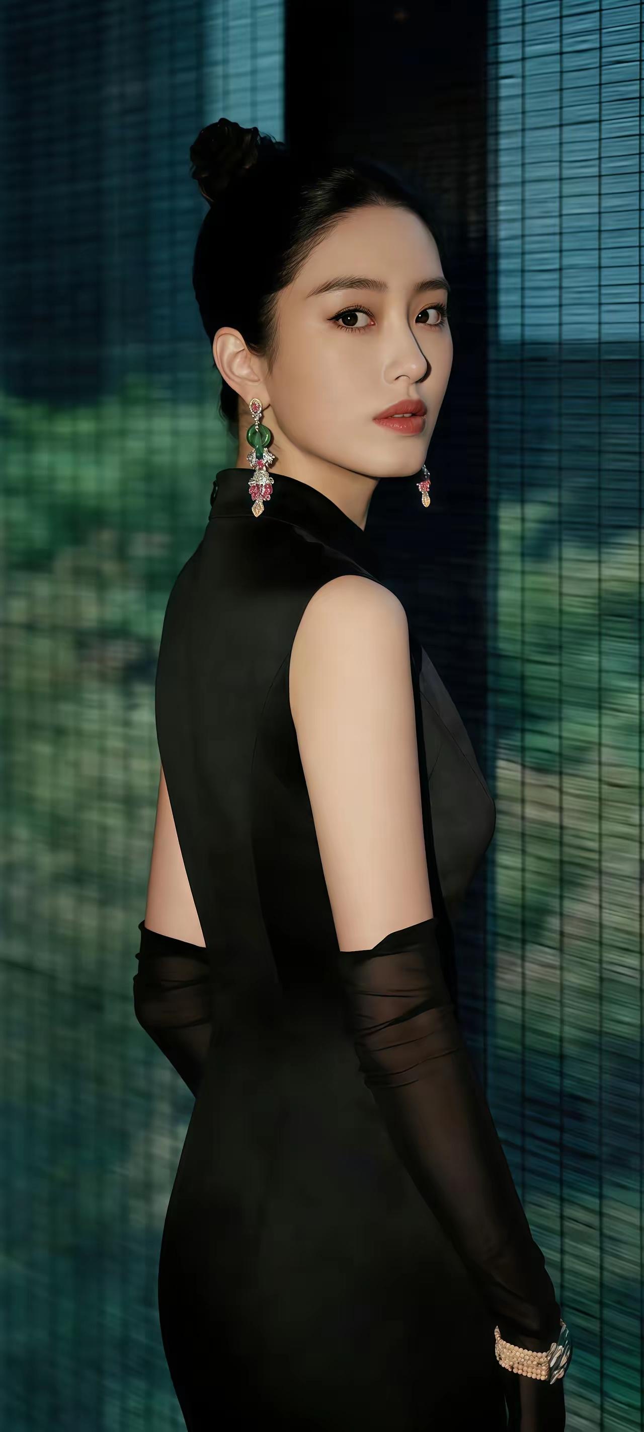 优雅黑裙,复古风韵,绿宝石耳环,尽显高贵气质。