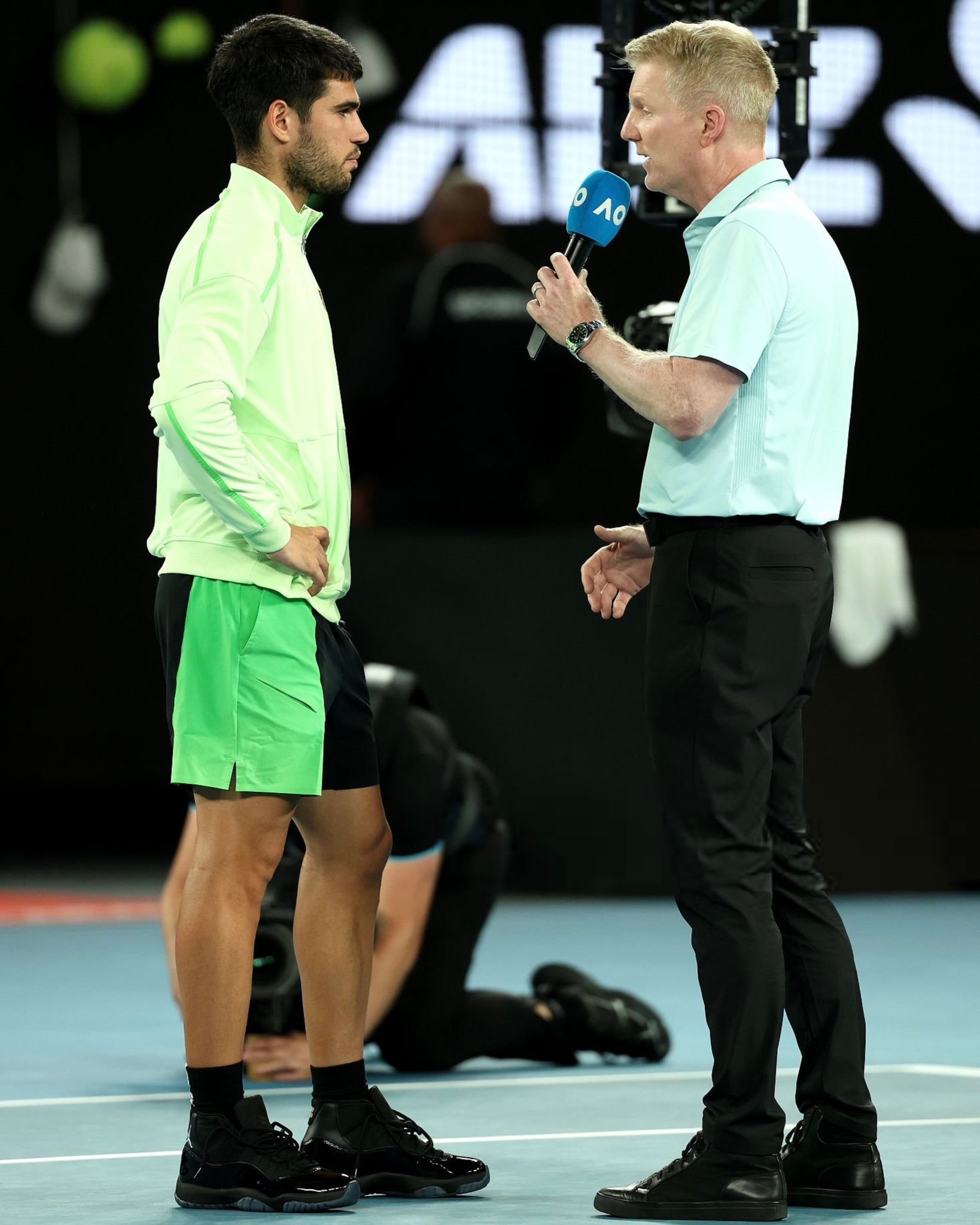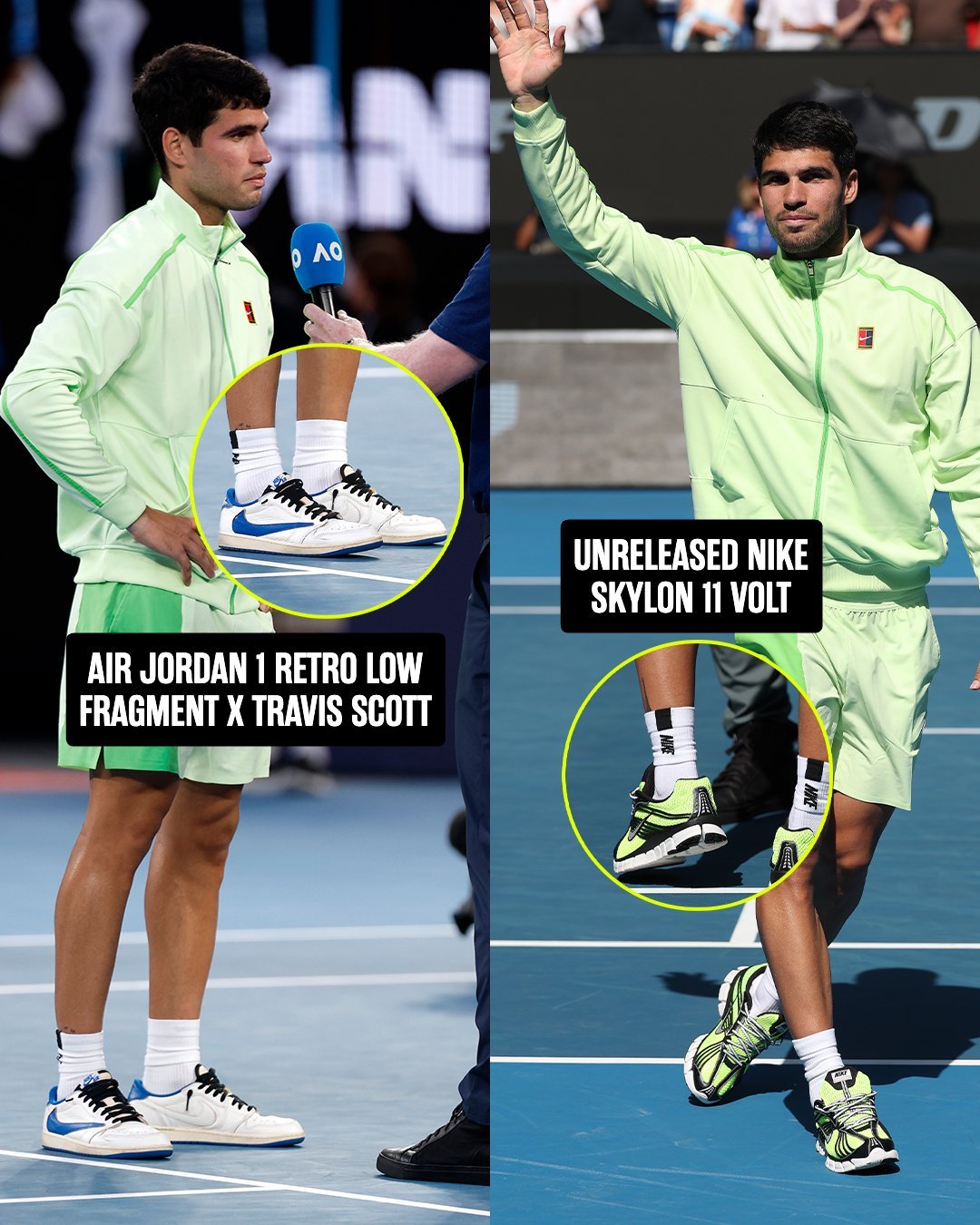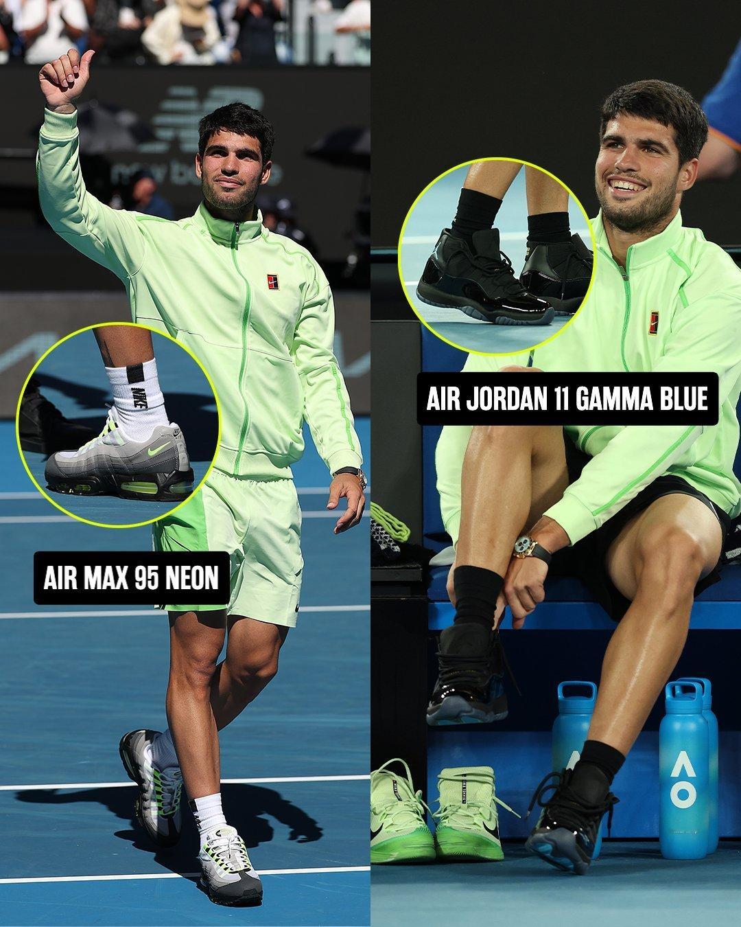 阿卡在本届澳网夺冠,赞助商也赢麻了,尤其是每场比赛后,阿卡接收现场采访时换的球鞋,全是品牌曝光。我最喜欢图三这款AJ 11 Gamma👟