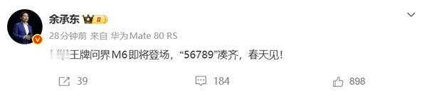 “春天见”,预计2026年Q2上市。余承东说问界M6春天见