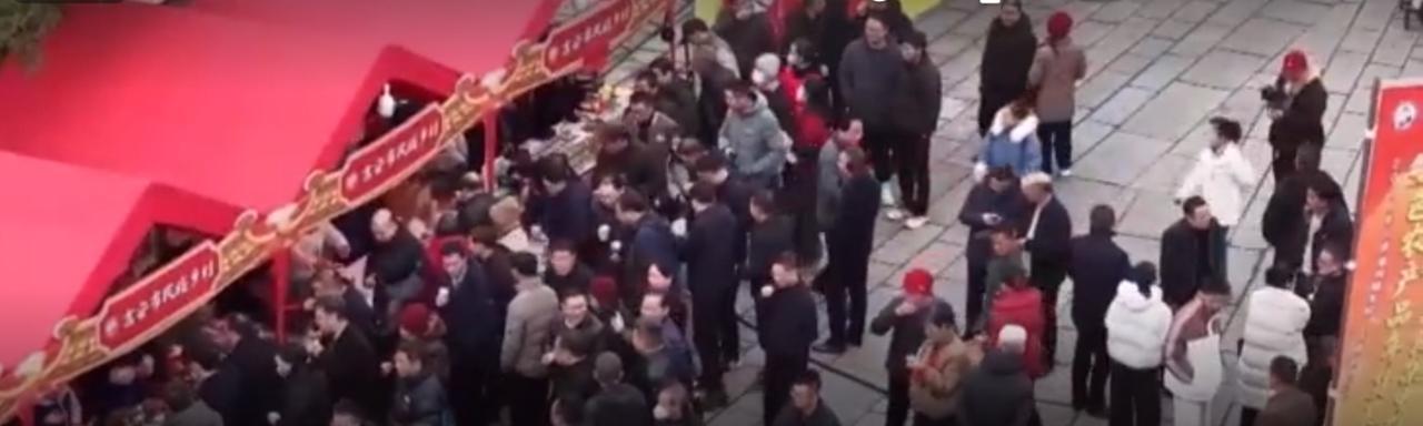 春节将至,红帐篷连成的集市里满是热闹烟火气。姑娘们凑在摊前挑选年货,红薯粉条、捶打年糕的石臼透着质朴年味。阿姨们扭着秧歌,红绸翻飞间尽显民俗风情;书法家挥毫写春联,把祝福凝在笔锋。往来行人笑逐颜开,在地道风物与热闹歌舞中,感受着刻在骨子里的团圆期盼。