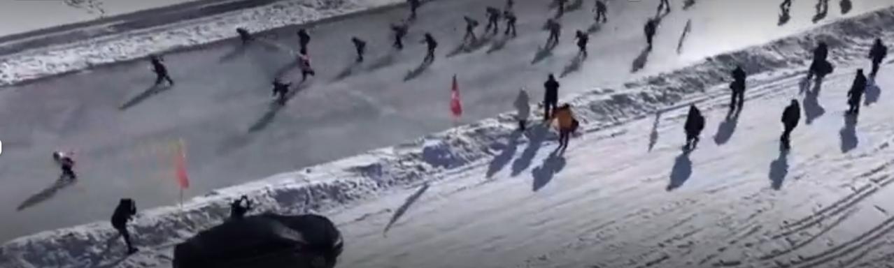 北国冬日的冰雪盛宴正在火热进行!冰面上,选手们划着冰龙舟奋力冲刺,船桨翻飞溅起细碎冰花,呐喊声此起彼伏。色彩鲜艳的冰雪建筑旁,徒步爱好者身着红背心有序前行,越野车在冰封河道轰鸣飞驰,尽显速度与激情。玩累了就钻进暖融融的餐厅,热乎美食驱散寒意,欢声笑语里满是冬日限定的快乐。