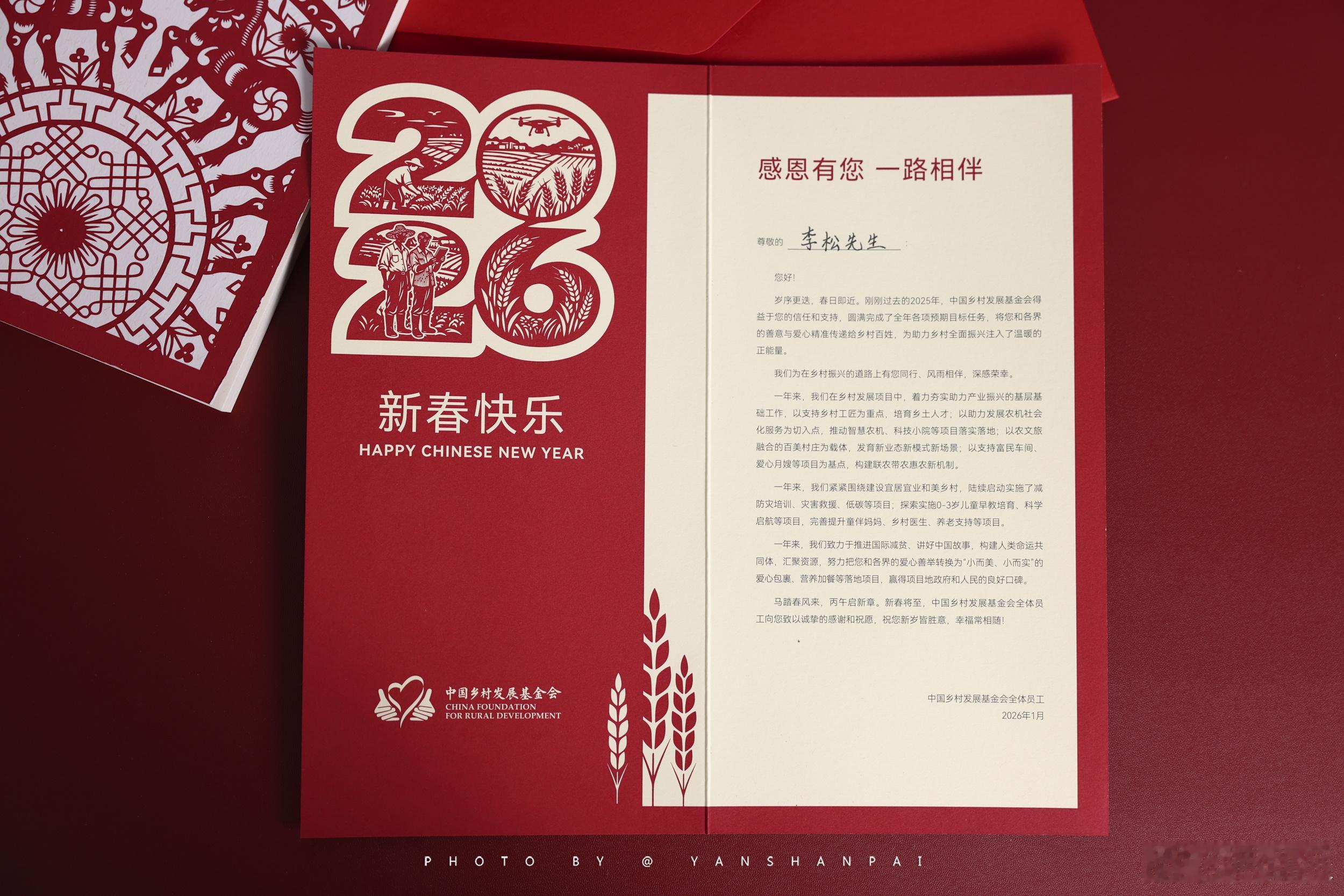 收到了来自中国乡村发展基金会的新春礼物。关注中国乡村发展,2026我们在路上,6