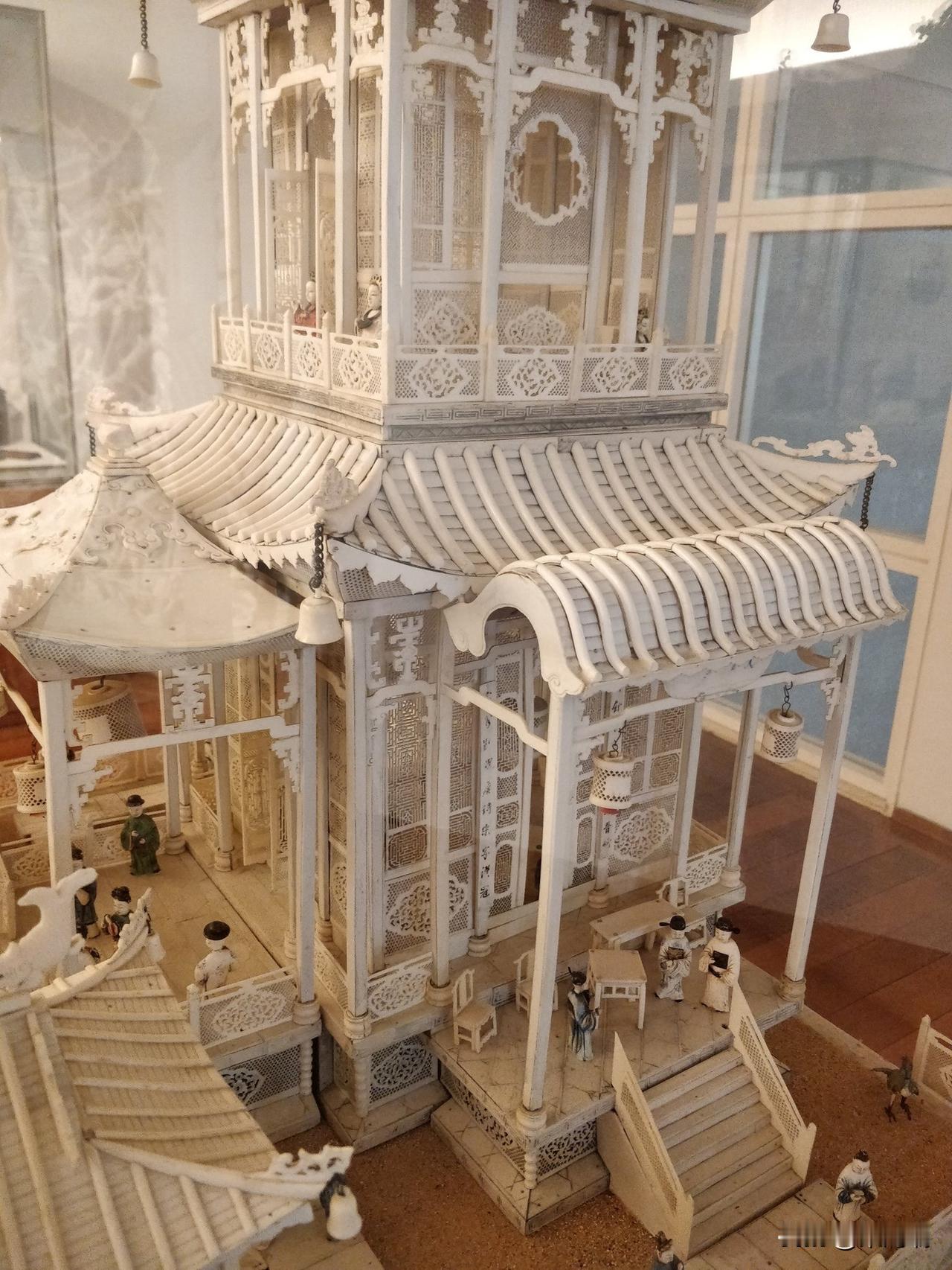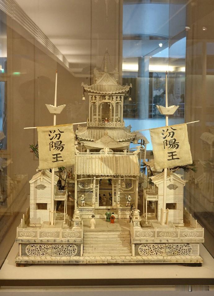 极珍贵的牙雕,来自嘉庆皇帝赠送给拿破仑第一任皇后的国礼 这座象牙雕阁楼收藏于法国吉美博物馆,根据博物馆介绍,是嘉庆皇帝赠与拿破仑第一任皇后约瑟芬·博阿尔内的一份国礼,全手工制作,其精美程度很容易让人误会为3D打印或激光雕刻。 汾阳王是唐朝名将郭子仪,这份礼物取意典故“满床笏”。郭子仪为四朝元老重臣,地位煊赫,家族子女皆是朝中权贵,六子郭暧为公主驸马。郭子仪六十大寿时,公主、家人、朝臣皆来贺寿,竟把笏板摆满了床榻,暗喻家门富贵,福禄昌盛。