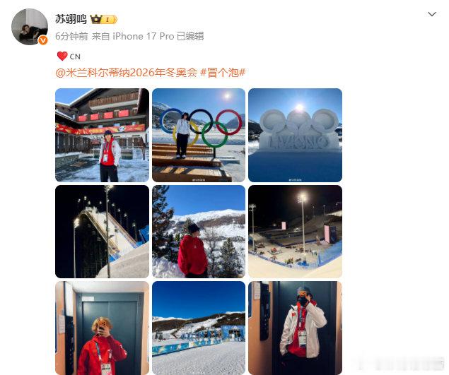 抵达米兰冬奥村,晒出与奥运五环的自拍,以及大跳台赛场等多张照片,米兰冬奥会的脚步越来越近了!