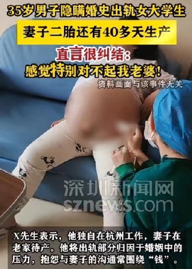 还有40多天妻子就生了,结果男子出轨女大学生,一边愧疚一边又管不住腰带说白了就是虚伪 近日,杭州一名35岁男子的自白引爆全网。他在电台节目中坦言,自己在妻子怀二胎、预产期仅剩40多天时,隐瞒婚史出轨了一名20多岁女大学生,一边诉说对妻子的愧疚,一边又纠结于无法断绝与第三者的关系,这番虚伪的两难,彻底激怒了网友。 该男子与妻子结婚近十年,育有一女,因工作原因独自在杭州打拼,妻子则在老家安心待产,独自承担着孕晚期的不适与照顾长女的辛劳。婚后十年的柴米油盐,在他眼中却成了压力来源,他抱怨妻子每次通话都围绕产检费、奶粉钱、生活费,全是现实琐碎,让他心生厌烦。 一次偶然,他在社交平台结识了一名女大学生,初期刻意隐瞒自己已婚且妻子待产的事实,两人从线上投机聊天迅速发展为线下关系。男子直言,女大学生与自己“各方面都很像”,能听他倾诉烦恼,更让他心动的是,对方从不对他索取,反而拿出自己的奖学金请他吃饭、买礼物,这份所谓的被重视、被崇拜感,让他彻底迷失。 纸终究包不住火,在男子坦白婚史后,女大学生崩溃哭闹,而他竟以“心软”为由,迟迟不愿彻底断绝关系。一边是怀胎十月、即将临盆的发妻,一边是涉世未深、真心错付的女学生,他没有丝毫悔改,反而沉浸在自己的两难中,拨通电台热线寻求所谓的帮助,口中满是“对不起老婆”,却字字句句都在为自己的自私辩解。 此事曝光后,全网一片怒骂。网友纷纷痛斥,孕晚期是女人最脆弱的时刻,妻子为家庭生儿育女、操持内外,他却用背叛回报付出;所谓的愧疚,从不是真心悔过,只是无法平衡两段关系、怕两头落空的焦虑。而那名女大学生,本可以有更好的选择,却因轻信谎言错付真心,沦为这场闹剧里的无辜受害者。 太虚伪了,这不是心软,也不是真心觉得对不起老婆,在我看来这更可能是一种自欺欺人的借口。他打着“心软”“愧疚”的幌子,行着自私自利之事。他以为自己在两段感情中难以抉择是一种深情的表现,实则是贪婪在作祟。他既舍不得妻子多年的陪伴和家庭的安稳,又贪恋女大学生带给他的新鲜感和崇拜感。 他所谓的“两难”,不过是在权衡利弊,怕失去女大学生的年轻活力,又怕失去妻子为他营造的温馨家庭。他没有勇气承担自己背叛的后果,才会在电台里诉说自己的“痛苦”,试图通过这种方式来减轻自己的罪恶感,让自己看起来不那么可恶。对此你怎么看?