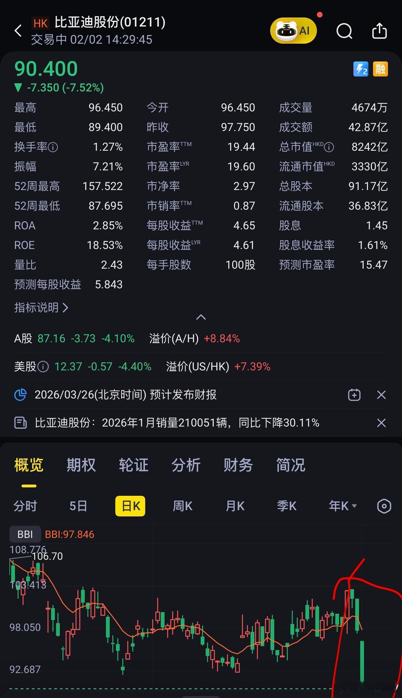 2026年1月销量不是很理想,后期展望也不理想,各家上市车企股价大跌也是正常了。