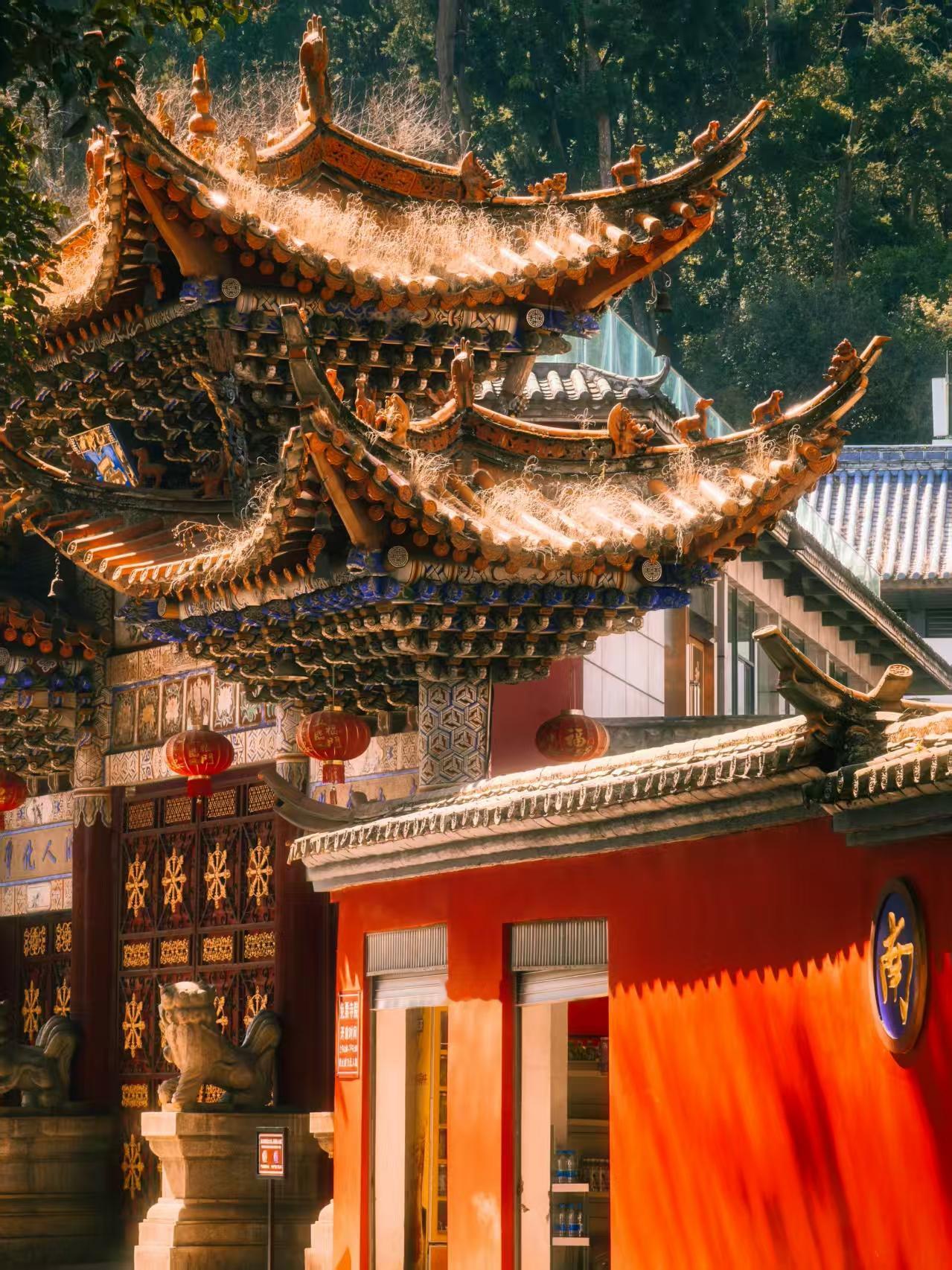 昆明虽地处边疆,又是各民族杂居区,但昆明的中华传统文化底蕴其实并不输于中原内地。 在昆明你可看到许多中国经典的汉族传统文化类型,其中建筑就是最直观的一种。 登上昆明滇池西岸的西山,你所到达的第一座寺庙一一华亭寺,就充分彰显出了中华古建之美。 走进华亭寺,细细品味那飞檐翘角、斗拱雕梁、金瓦红墙、雕花门窗……你会深切感悟到这深山古刹的幽雅古朴、静穆平和之美。 与天下名山名寺相比,西山华亭寺缺的只是因偏居边疆而缺少的名气与关注,而它的整体设计、构造、细节、氛围……真的不输那些千古名刹。 昆明这座城市,真的是一座让你越深入越有惊喜发现的宝藏城市。