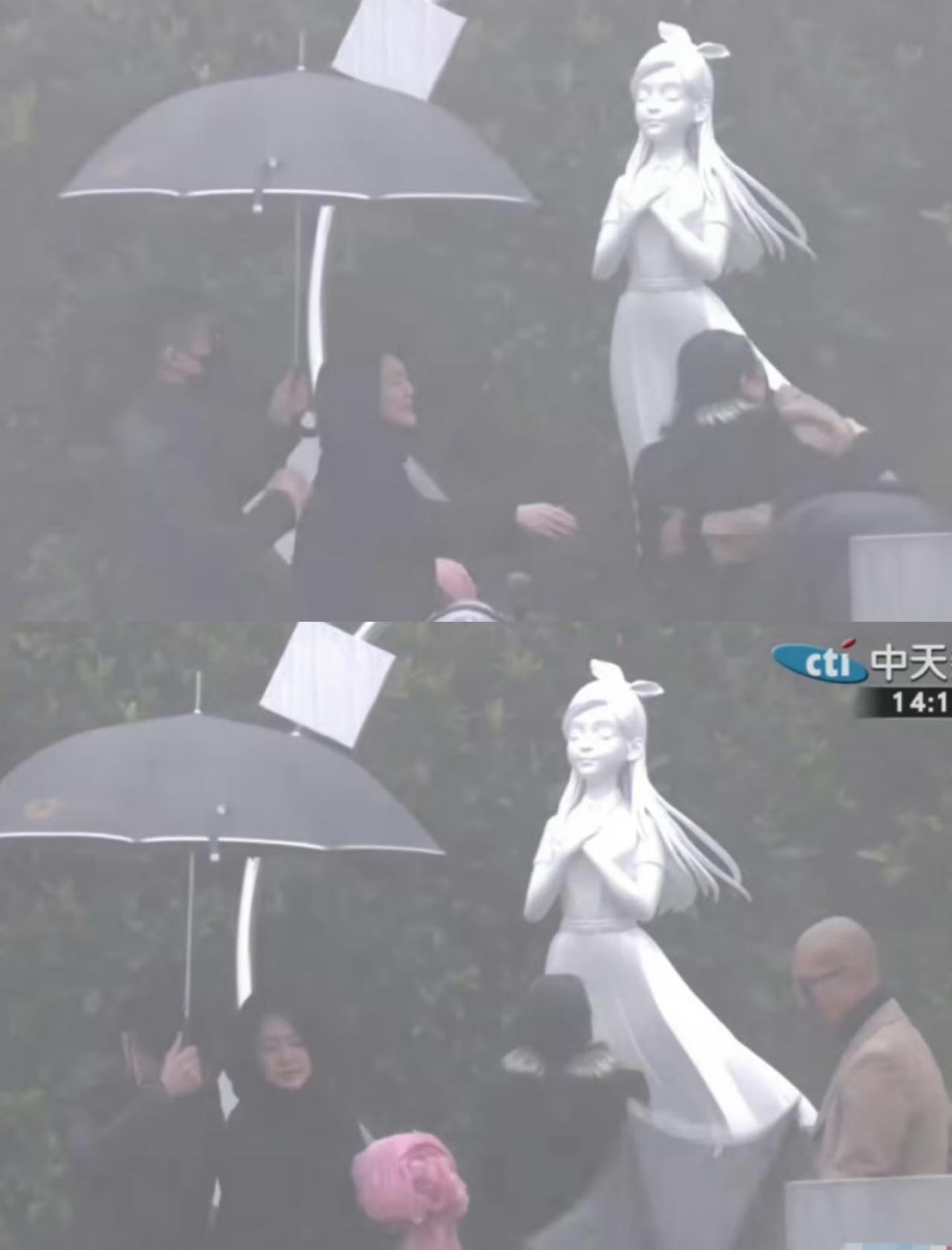 大S去世一周年祭日,很多熟人都来到金宝山看她。 又是阴雨绵绵的天气,大S生前恰好也最喜欢雨天。 前来的亲友除了具俊晔,蔡康永,黑人夫妇之外,蔡康永和言承旭也特意赶来,连前男友周渝民也来了。 不仅于此,具俊晔之前酷龙组合的队友也一同现身,即便坐着轮椅,身形不便也没有缺席。 具俊晔给大S亲手设计的雕像也正式“揭幕”,是一位双手握紧祈祷的长发小姑娘。