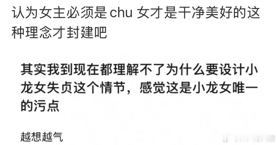 不喜欢小龙女失贞只是因为这很恶趣味,幻想是跟杨过,实际却被尹志平迷j,爱角色就不想让她吃这种纯受罪不赋魅的苦