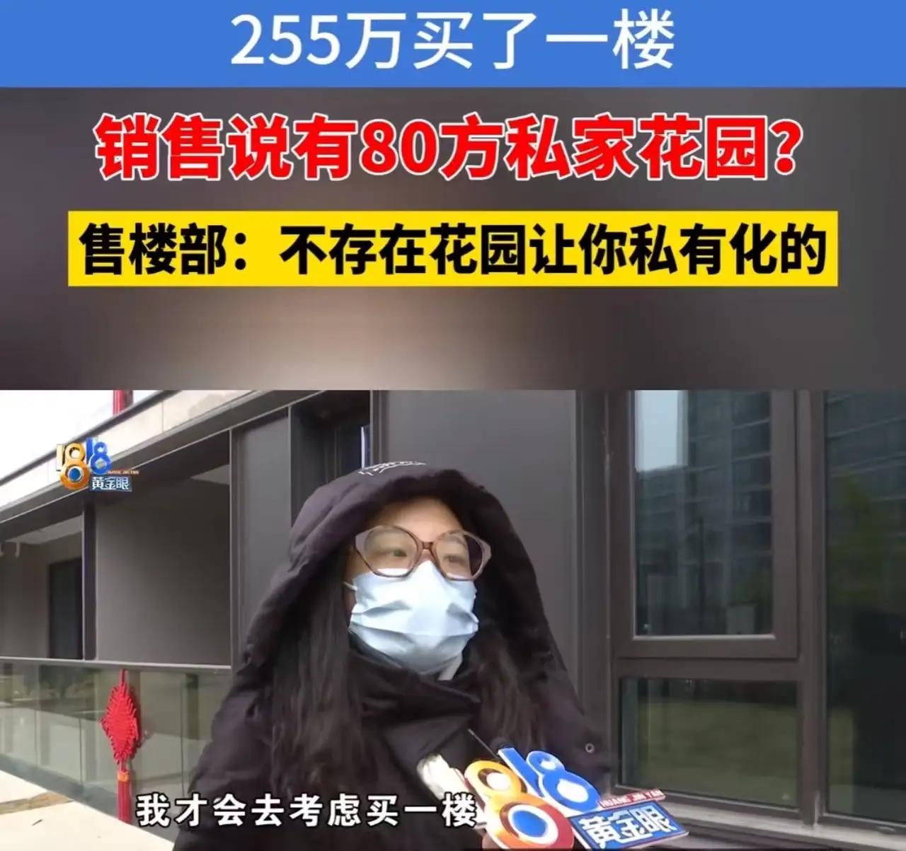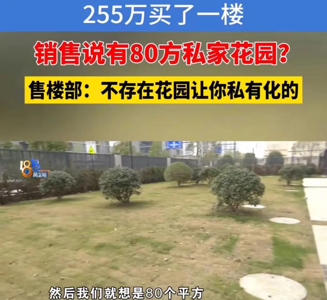 女子花255万买了一楼,销售说买房有80方私家花园,可是交付后却被通知私家花园变公用了。女子质疑这是销售欺诈,可经理却说买房“带”花园,不是“送”花园!女子:“那我有病,花更多钱的买一楼? 边女士站在自己新交付的“一楼豪宅”前,看着原本承诺的80㎡私家花园被划为公共绿地,心彻底凉了 边女士的心情可以用“从天堂到地狱”来形容。那天,她站在自家门口,望着那片曾经让她心驰神往的绿意盎然的私家花园,心中满是失望与愤怒。她花了整整255万元,原本以为买到的,不仅是一套房子,更是一份属于自己的私密空间,一个可以安放梦想的庭院。而现在,这一切都变了味。 “你们这是欺骗!”她忍不住大声质问开发商的销售和经理,“我花这么多钱买的,怎么能变成公共绿地?你们是不是在忽悠我?我不是买了个‘带’花园的房子吗?为什么变成‘公共’的了?” 销售代表面带尴尬,试图用一套“合同解释”来搪塞:“女士,合同上写的是‘带’花园,这意味着房子带有花园景观,但不代表花园是您的私人财产。我们这里的‘带’字,是行业内的用语,代表的是房屋附带的景观条件。” “带”字的背后,是一场看似无懈可击的文字游戏,却让边女士一时间哑口无言。她心里清楚,这不是简单的合同条款问题,而是一场关于诚信与承诺的较量。 实际上,类似的“带”字陷阱在房地产市场屡见不鲜。开发商为了吸引购房者,常常在宣传时夸大“私家花园”“尊享景观”“专属庭院”,而在合同中用“带”“配套”“景观”一类模糊词汇,试图将责任推得一干二净。 更令人愤怒的是,很多购房者在签合同前,都被销售人员的热情所迷惑,忽略了合同细节。等到交房时,才发现所谓的“私家花园”变成了“公共绿地”,甚至有人发现,原本承诺的景观被改成了施工用地或停车场。 这背后,折射出的是开发商对诚信的漠视和对消费者权益的漠然。消费者花了大价钱,却买到了“看得见、摸不着”的承诺,这样的“虚假宣传”何其普遍! 边女士的愤怒,不只是对合同的失望,更是对人性的一次深刻洞察。我们每个人都渴望信任,渴望被诚信对待。她相信了销售的每一句承诺,才会掏出血汗钱去买房。可当“承诺”变成“空话”,信任也随之崩塌。 这反映出一个令人心碎的事实:在商业利益的驱使下,诚信正变得越来越稀缺。开发商追逐利润最大化,销售人员为了业绩忽悠消费者,法律的保护又难以跟上市场的节奏,普通人只能在一场“合同游戏”中不断受伤。 但边女士没有选择放弃。她决定用自己的行动,唤醒更多人的维权意识。她加入了业主维权群,开始整理证据,准备诉诸法律。 在这个过程中,她遇到了许多同样受骗的业主。有的买了“学区房”却发现“学区”早已变更;有的买了“湖景房”却被告知“景观”只是规划图上的未来;还有的,像她一样,花了巨款买了“私家花园”,却变成了“公共绿地”。 他们都在问:为什么合同和宣传中的承诺可以被随意篡改?为什么开发商可以用“带”字迷惑消费者?为什么法律不能更有力地保护我们这些普通人? 边女士的坚持,点燃了更多人的希望。她相信,只要我们敢于较真,敢于维权,就一定能让那些虚假宣传付出代价,也让行业回归诚信。 当你为一套房子花费毕生积蓄时,你期待的不仅是一个居住的空间,更是一份承诺,一份信任。可现实告诉我们,市场上的“承诺”常常夹杂着“套路”。 但只要我们不放弃“较真”,就能用行动改变现状。边女士的故事,或许只是千千万万个普通购房者中的一个,但她的坚持,却在悄然唤醒整个行业的良知。 所以,亲爱的读者,你是否也遇到过类似的“合同陷阱”?你是否也在为权益而战?请在评论区分享你的故事,让我们一起为更公平、更诚信的市场发声。买一楼的房子 花园的一楼