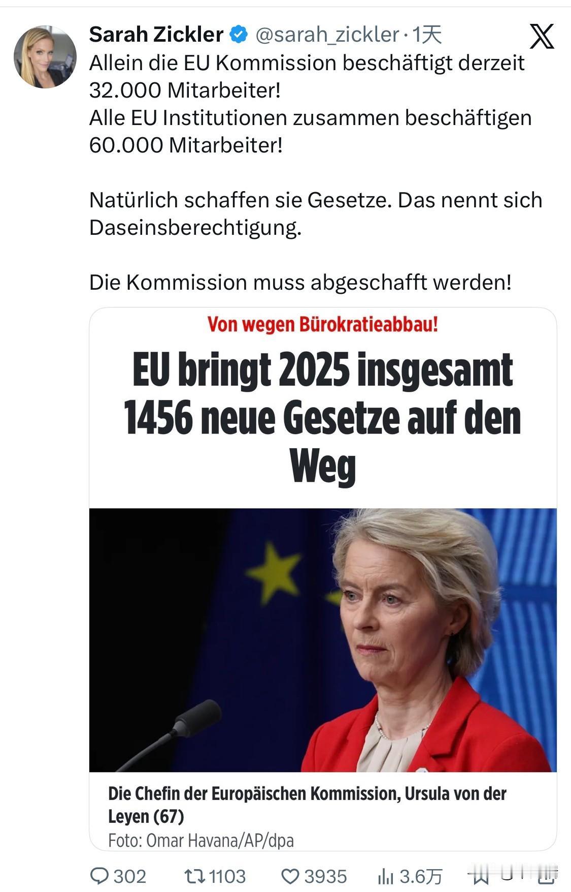 欧盟委员会 (European Commission)截至 2024 年底,共雇佣了约 32,800 名员工。这包括永久官员、合同工以及位于各部门(如国际伙伴关系总司、联合研究中心和翻译局)的临时工作人员。 欧盟所有机构总计:根据 EU Employment 的数据,欧盟系统共由约 76 个机构组成,总雇佣人数已达到 约 79,211 人。 欧盟主要机构人员分布概况 除了欧委会,其他主要机构的雇佣情况如下: 欧洲议会 (European Parliament):雇佣约 7,500 名员工。 欧洲投资银行 (EIB):作为卢森堡最大的欧盟雇主,雇佣了约 4,700 名员工。 其他部门:还包括欧洲理事会、欧盟法院、欧洲审计院以及 40 多个欧盟专门机构(如欧洲刑警组织、欧洲边境管理局等)。 虽然 6 万至 8 万名的总人数看起来庞大,但与欧盟约 4.5 亿的总人口相比,平均每 9,000 名公民才配备 1 名欧盟员工。这一比例甚至低于瑞典或希腊等成员国中央政府的雇员规模。