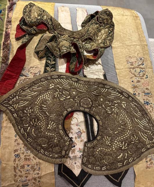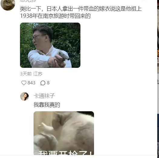 她的男友挑衅我们的底线,她无知却又炫耀般的发到网上,一句轻飘飘的来中国旅游贸易,就妄图掩盖那段绚丽历史了。 有博主发帖,想知道自己比利时男朋友曾曾祖父,于1900年到1920年来中国旅游贸易带来的藏品是什么? 可眼尖的网友发现,白色是清代的刺绣,挽袖一条,上面绣着“笑他英雄三百辈,一起随我步瀛洲”。 这里化用了宋代汪洙神童诗中的诗句,满怀报国情怀。 另外一条绣着“最爱篱前花色好,祥云一片拥瑶台”。 他们最爱看篱笆前花儿开得正盛,繁花如云,簇拥着瑶台般的美景。 在外部战火中,他们唯一的寄托就是这个小家庭。是对婚姻幸福美满的祝愿,和对未来爱情生活的向往。 新娘子可能就在镜前试穿,憧憬着红盖头下的未来,可是这人间的斑斑血迹却又让人无奈。 1900年和1920年间,中国深陷主权与尊严被肆意践踏的至暗年代,一件沾染血迹的婚服成为藏品,背后是暴力的剥夺与生命消失。 所谓的旅游贸易,也不过是殖民队的遮羞布。 那血痕之下,一个个湮没的名字与故事,不是收藏品,是我们从未愈合的伤口。 忘记血泪的贸易,是对历史最大的背叛,也是对文明本身最深的亵渎。