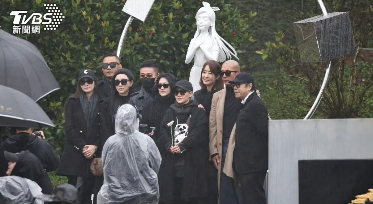小S、范范黑人、范晓萱、具俊晔、吴佩慈、贾永婕、蔡康永Mike和大S雕像合影