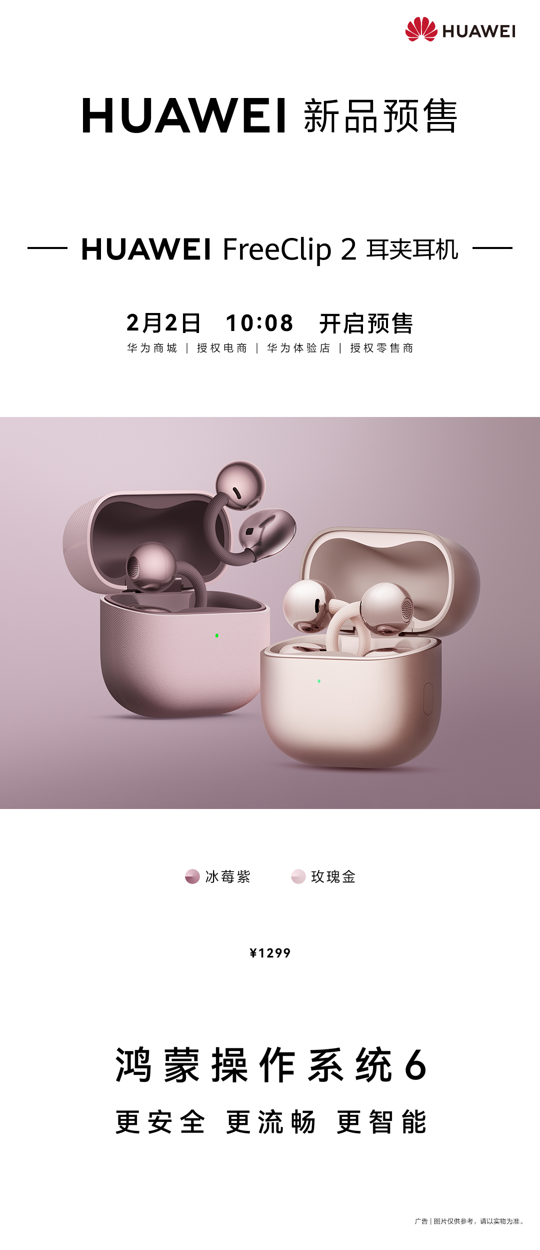 【#耳机届的新年开运神器#】今年春节,“戴金”有了科技新选择。以无感佩戴、搭载星闪™音频技术的华为FreeClip 2推出玫瑰金、冰莓紫两款全新配色,并与周大福联名推出相关配饰,既有以凤凰翎羽为灵感带来的吉祥美好,也有以發财小金砖为灵感带来的招财纳福,让用户将美好寓意在新春佳节之际戴在耳边,满足了年轻一代“既要科技潮流,又要传统好意头”的复合需求,实现了单品价值最大化。据了解,目前华为FreeClip 2两款新色及周大福联名礼盒已开启预定。#今年过年要把福气戴身上#