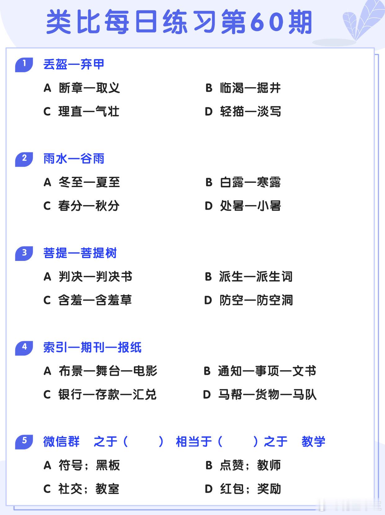 图推类比每日练习第60期图推难度:☆☆类比难度:☆☆开学元气加油站决战公考省考26省考
