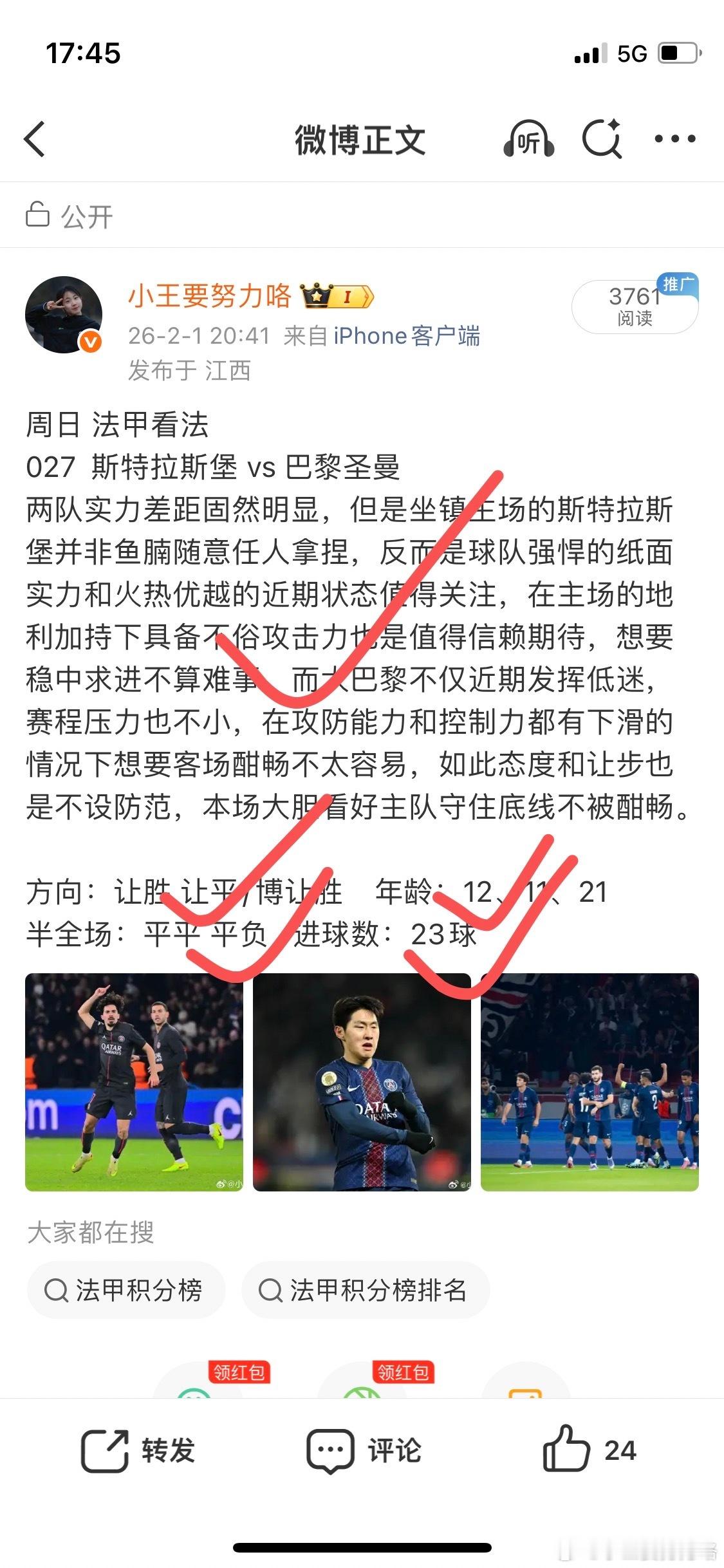 昨天单场公推三场方向全对,巴黎方向全覆盖!近两个月单场分享来到118场,拿下93场,实力+坦荡是不变的初心,周一继续怼虹!