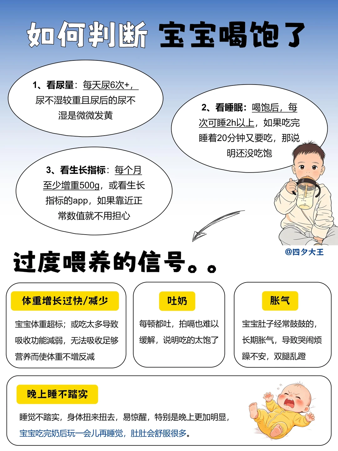 每次奶量能到90ml左右,有些胃口好的宝宝可能会喝100ml以上。要判断是否加量,可以观察宝宝睡眠,如果能稳定睡3小时,却突然频繁2小时就醒,说明该增加奶量了,每次加10ml即可。