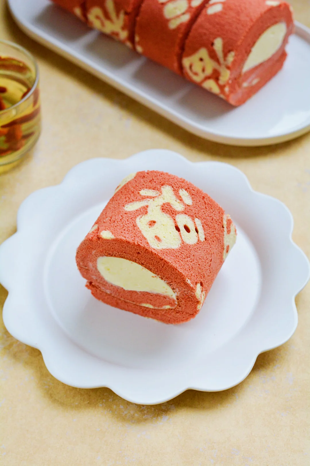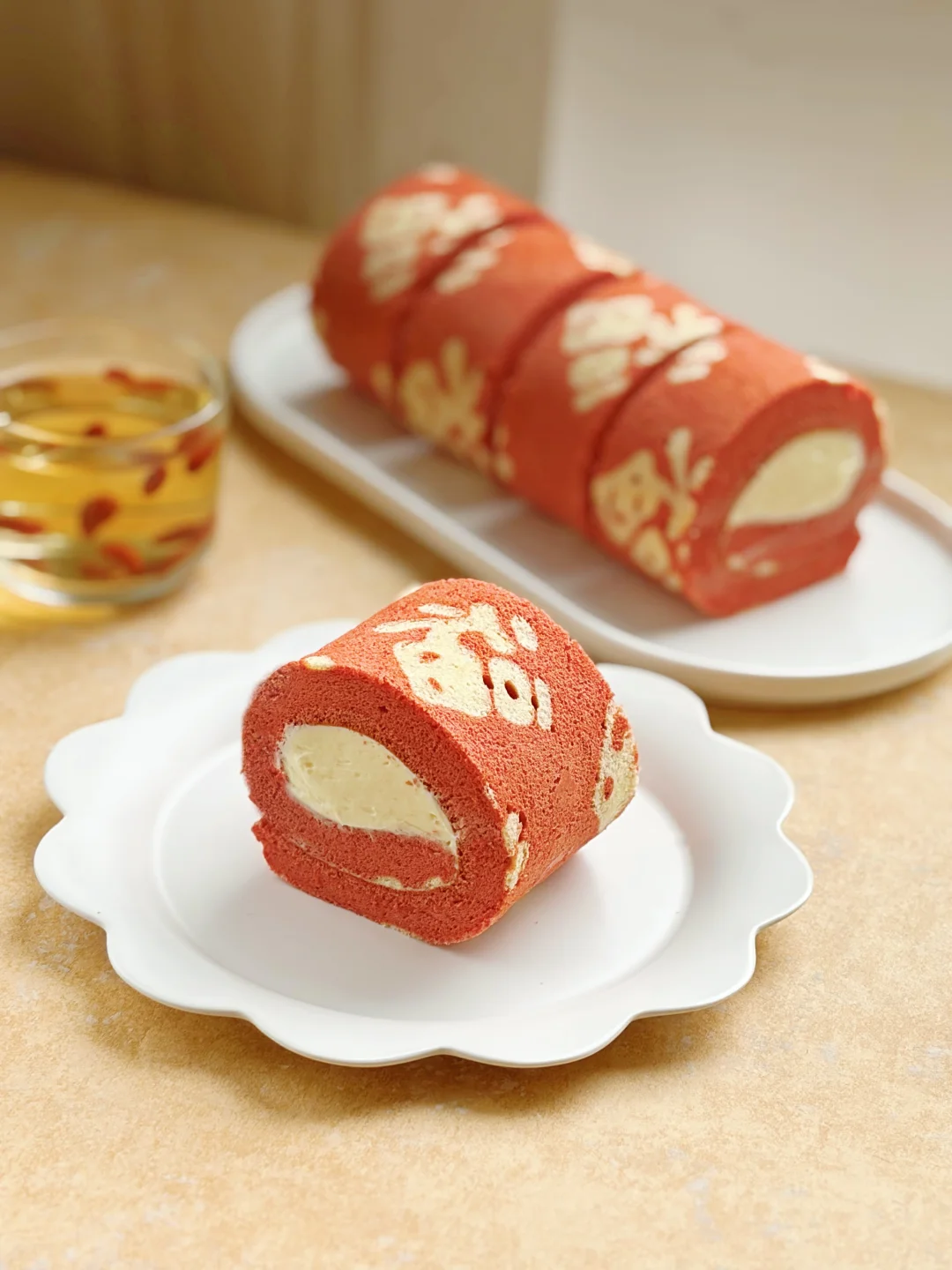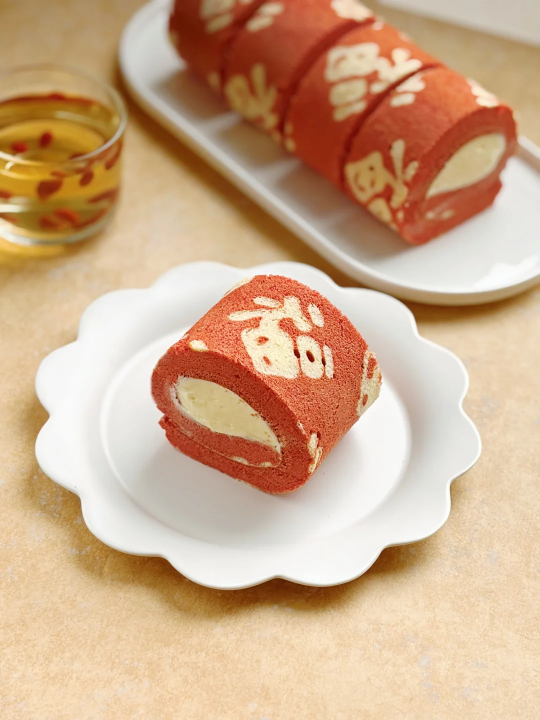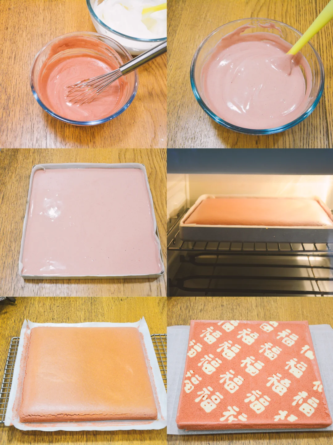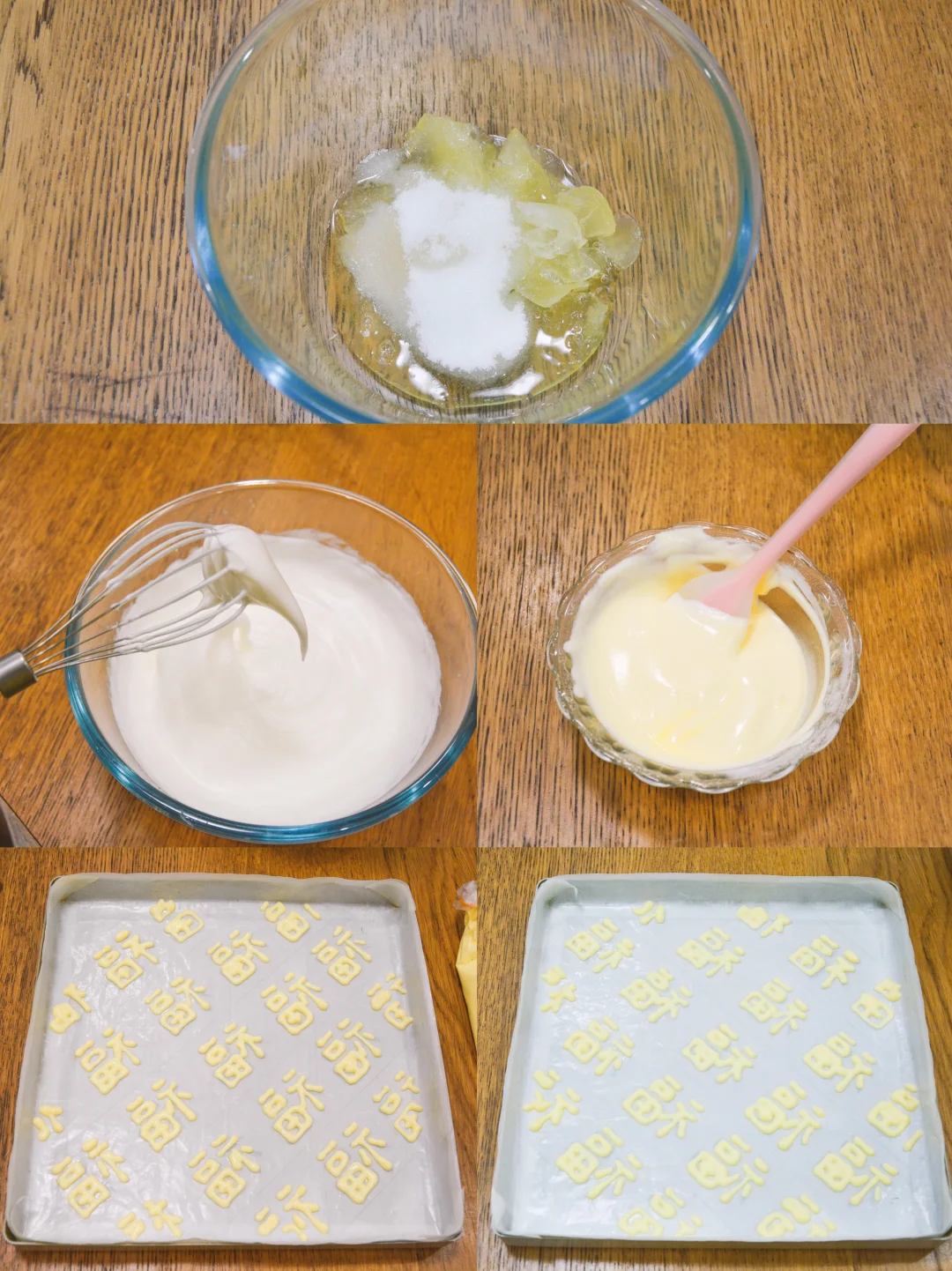 2. 福字蛋糕糊:15克蛋黄糊+15克蛋白糊;