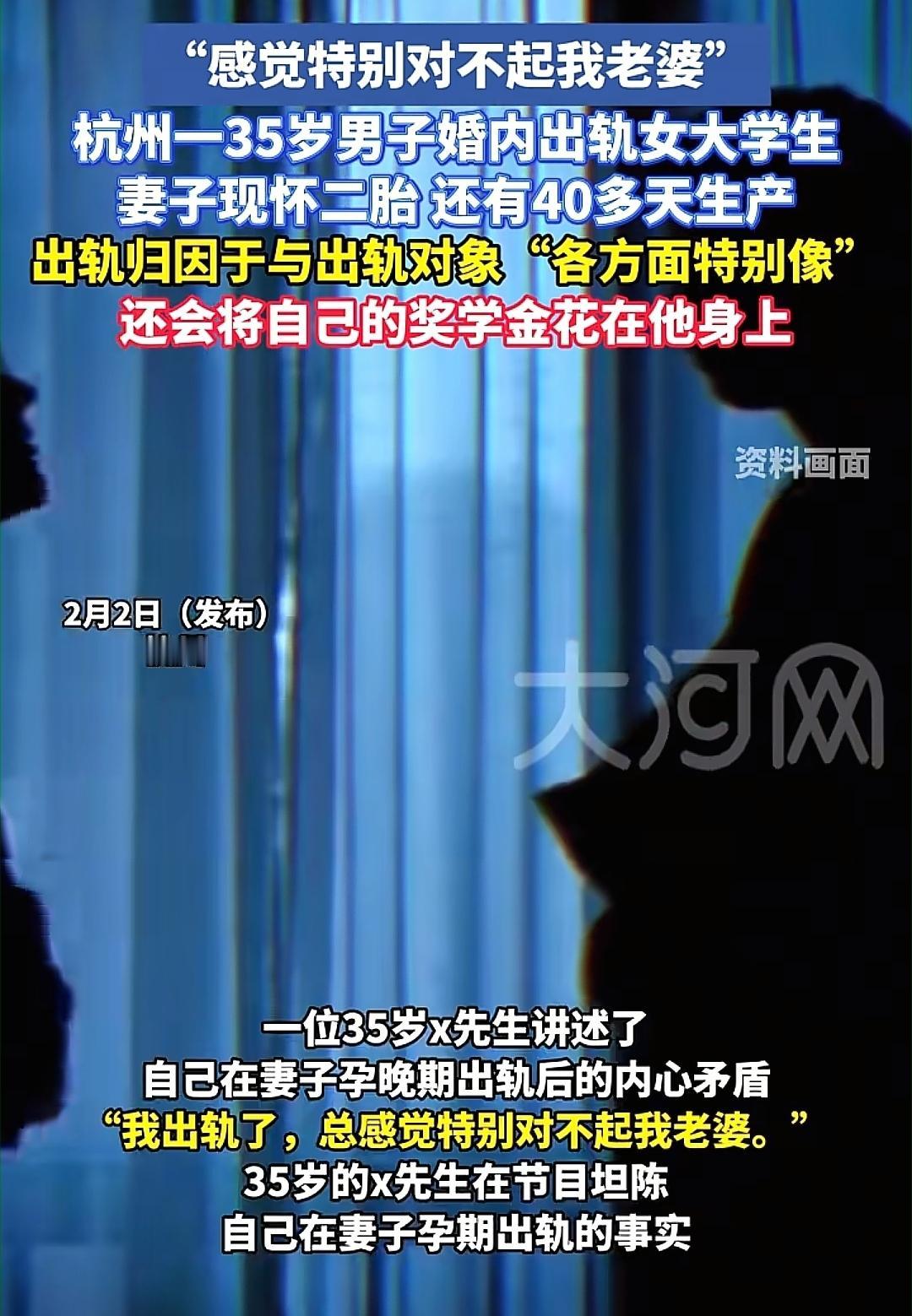 太荒唐!杭州,一位35岁的X先生,妻子怀着二胎、离预产期只剩40多天,本该努力賺钱,他竟然出轨了一名20多岁的女大学生,事后还上节目“诉苦”,说老婆只会谈钱,反倒是女大学生让他觉得被崇拜、被重视。这波操作,真让所有人目瞪口呆! X先生和妻子结婚快十年,大女儿已经懂事,妻子如今在老家待产,他独自在杭州打拼养家。 可谁想到,他在社交平台上认识了那名女大学生,从一开始隐瞒已婚事实,到后来线下见面、发生关系,一步步越陷越深。 直到纸包不住火,他才向对方坦白自己早有家室,女生哭闹不止,他反而“心软”了,断不干净。 他还给自己找补,说和女大学生“特别投缘”,什么话都能聊;而妻子呢,每次电话都绕不开“钱”,让他压力巨大。 更讽刺的是,女大学生不仅不花他的钱,甚至拿自己的奖学金给他交房租、买东西——这份“不索取”,却成了他背叛婚姻的借口。 十年夫妻感情,妻子孕期艰辛,等来的竟是最信任的人的背叛!你妻子正承受着身体的种种不适,怀着你们的孩子,你却在外面“找理解”“寻安慰”,还有脸嫌她只谈钱? 妻子,真的只是那个“只会谈钱”的冷漠角色吗?孕晚期,身体承受着巨变与不适,独自在老家照顾大女儿,等待新生命的降临。 她的世界同样紧绷:对身体的担忧,对未来的焦虑,对丈夫情感支持的渴望。当这些无法被细腻感知时,“钱”就成了最现实、也最安全的话题——它关乎家庭的生存底线。 也想对那位姑娘说:清醒一点!他能背叛为他生儿育女的妻子,又如何能对你负责?你那所谓的“不花他的钱”,在他眼里,或许只是一时新鲜,绝不是长久之计。 说到底,X先生就是自私。妻子怀二胎本就辛苦,又要照顾老大,身心俱疲只盼他能撑起这个家,他却只觉得“烦”。 女大学生那点“好”,不过是一时的情感刺激,他却拿来当成逃避责任的挡箭牌,完全忘了自己是谁的丈夫、谁的父亲! 婚姻里的真正松弛感,从不是没有压力,而是敢在对方面前展露脆弱。夫妻之间不该只聊“钱怎么花”,更能坦陈“我好累”“我害怕”,X先生若能把自己的压力和被肯定的渴望说给妻子听,而非认定她无法理解,结局或许全然不同。 一个人的成熟,从来都是为自己的选择负全责。愧疚从不是逃避的借口,感情出现裂痕,要么全力修复,要么坦诚结束,用欺骗和背叛制造更多伤害,从来都不是担当。 婚姻本就是一场需要不断磨合校准的合作,能容下生活压力、孕期情绪,也能容下对被崇拜的渴望,但这一切的根基,永远是坦诚沟通与绝对忠诚。 出轨从不是解决问题的办法,只会让一个问题变成三个人的灾难。维系婚姻的从来不是新鲜感,而是两颗心愿意共抗风雨、彼此支撑。那些向外寻找的所谓松弛,最终只会换来更深的紧绷,让关系彻底崩解。
