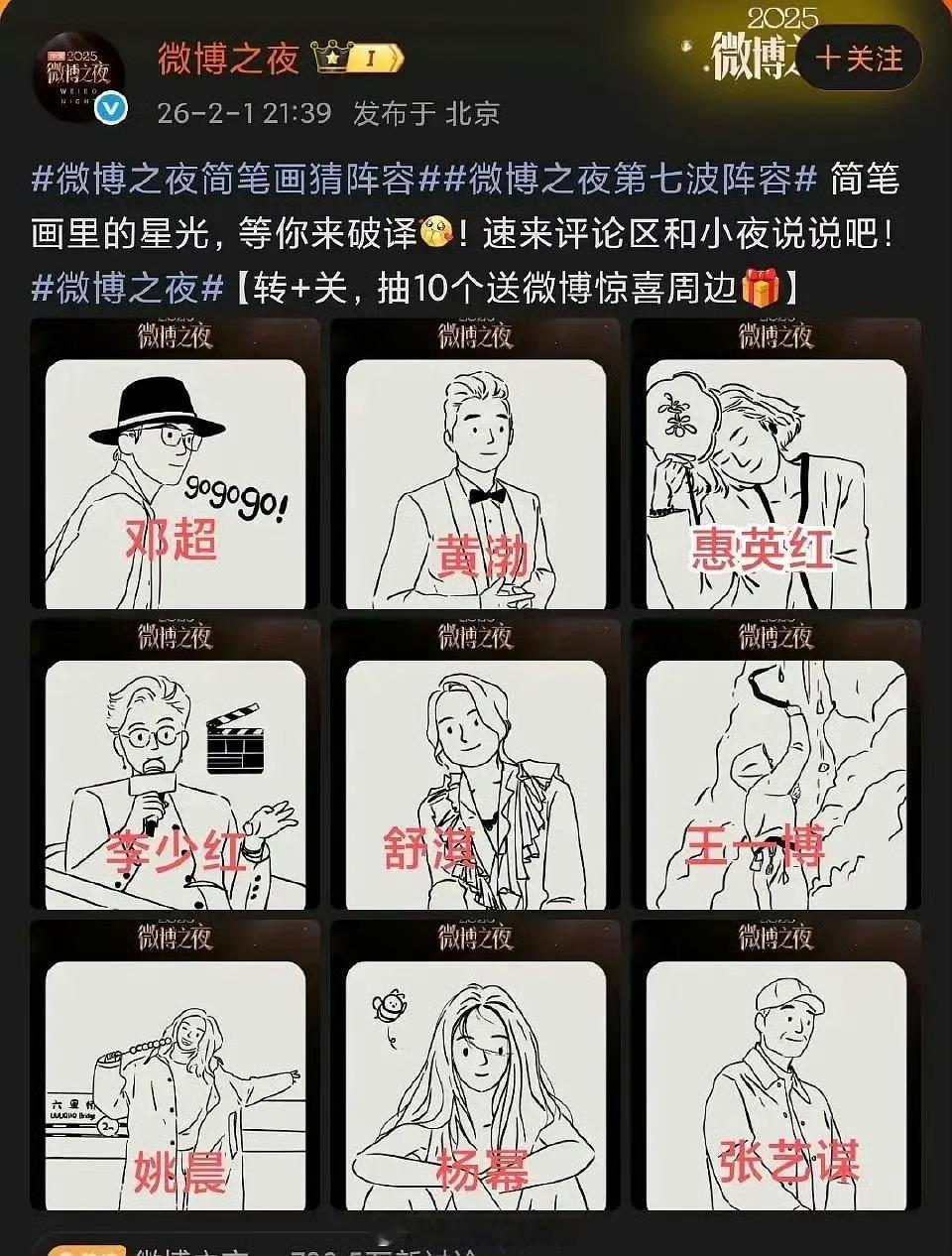 微博之夜第七波的阵容解析,已全部解码 是这些吗?!本次微博之夜全阵容到现在为止,微博之夜宣布的人。好多人~今天官宣的咖位也挺大的,还得是微博好多大咖啊坐等2月5日申奥 黄晓明 李冰冰 李宇春 沈腾 吴京 肖战 袁和平 杨紫 邓超 黄渤 惠英红 李少红 舒淇 王一博 姚晨 杨幂 张艺谋 ……
