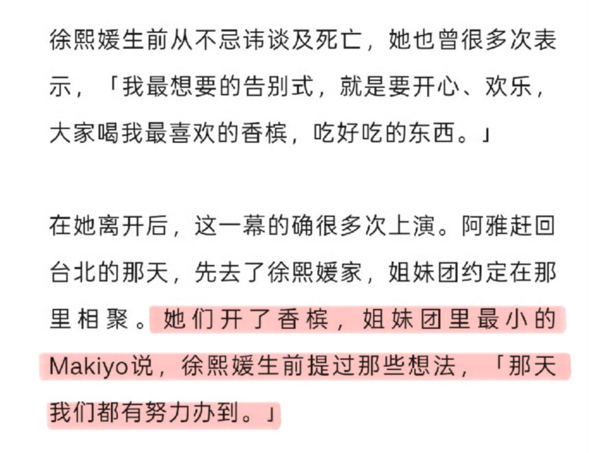 刚看了《人物》在大S去世一周年发的长文,真的有被触动到。大S的一生就像一场绚烂的烟火,短暂却耀眼。她在娱乐圈摸爬滚打,从青春美少女组合出道,到后来在影视、综艺等领域发光发热,每一步都走得坚定又精彩。她敢爱敢恨,对待感情勇敢又执着。尽管她的人生有起有落,但每一段经历都是她生命中的一部分。这篇长文里那些令人泪目的文字,让我们看到了一个更真实的大S,她的幸福、她的遗憾,都在字里行间。虽然她的生命短暂,但她留下的作品和故事,会一直被人铭记。