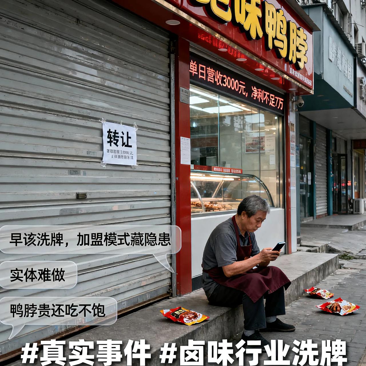惊了!卤味巨头遇冷,4000家绝味鸭脖门店突然倒下,行业彻底变天! 曾靠疯狂加盟称霸卤味界的绝味,一年半门店净减超4000家,加盟商直呼不赚钱,单日营收3000元净利竟不足7万。粗放加盟管理拉胯,新品不火还价格偏高,再遇消费需求转变,传统卤味彻底失速。 网友吵翻,有人说早该洗牌,加盟模式本就藏隐患,也有人感慨实体难做,还有人吐槽鸭脖贵还吃不饱。 卤味行业的寒冬来了?你觉得绝味还能翻身吗?评论区聊聊! 真实事件 卤味行业洗牌 实体生意太难了绝味鸭脖店转让 绝味鸭脖广告 绝味黑鸭煲 麻城绝味鸭脖 安徽绝味鸭脖 熟食鸭脖 锁鲜周黑鸭鸭脖