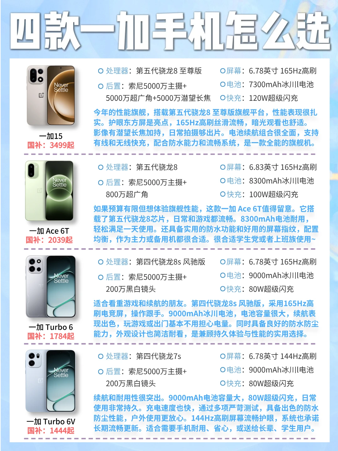 [黄金薯R]过年想换新手机?一加最近几款机型热度挺高,但定位各有侧重。[喝奶茶R]我按不同使用人群简单梳理一下,希望能帮你选对合适的一款~[自拍R]