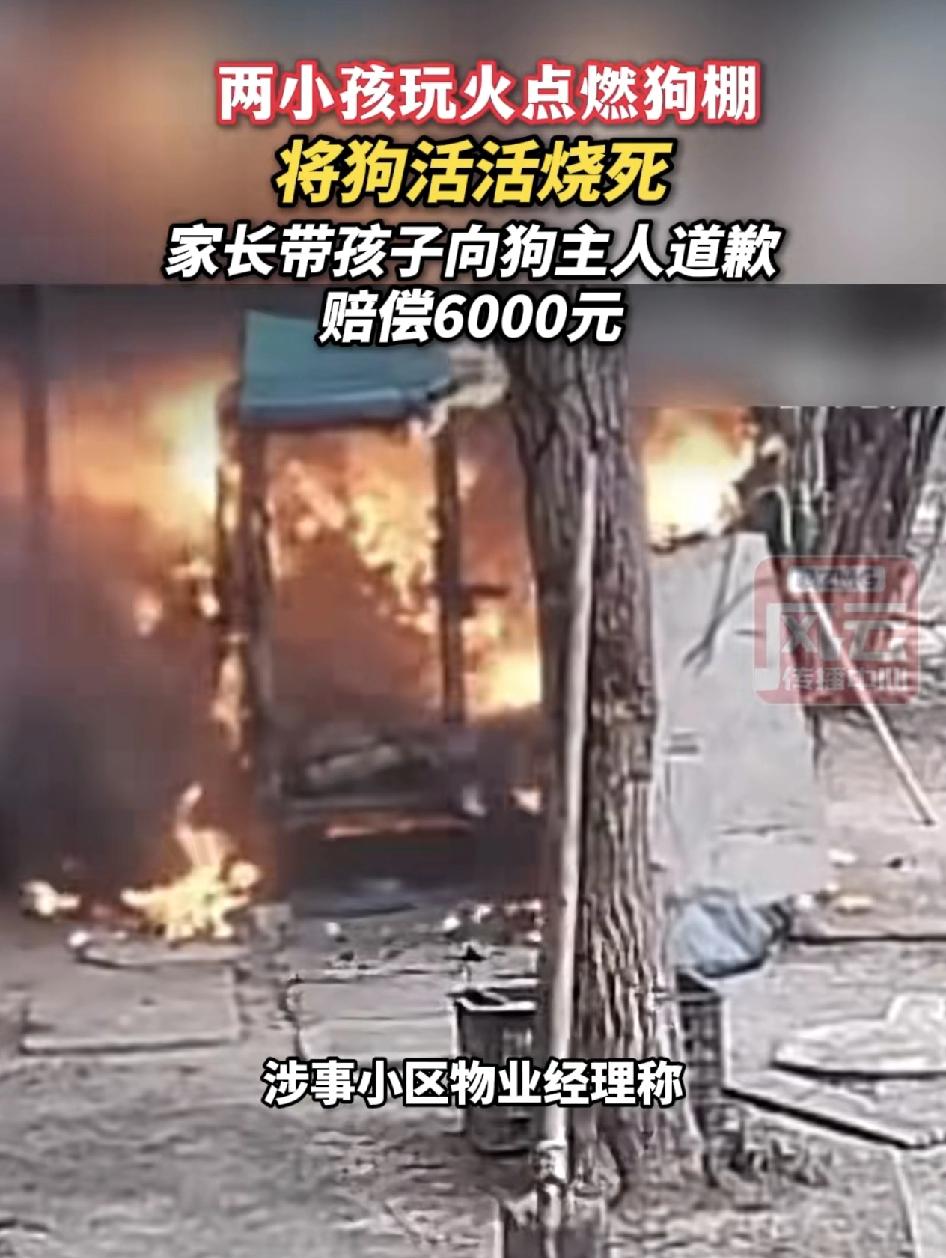 江苏东海县两小孩在小区内玩鞭炮,点燃了一狗棚,导致关在狗盆里的一只萨摩耶被活活烧死,两小孩的家长已经被传唤,家长向狗主人赔礼道歉,赔偿6000元。事情已经得到妥善的解决,但是有物业称小区内多次警告不能在公共区域放置狗盆,但是很多业主都不听,之前也有清理过一批。