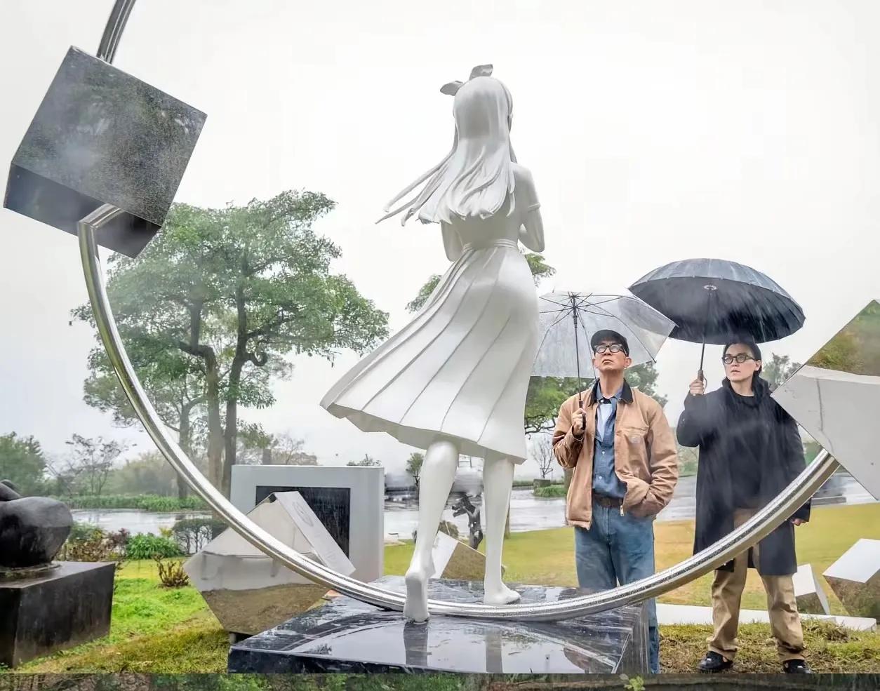 具俊晔设计的雕像,与大S本人一点都不像吗?其实也不是完全不像,只不过这透露着具俊晔的小心思。 五官与身材很像,雕像背影曝光,同样是S型身材,长发与裙摆迎风飘扬。 脸上肉乎乎的很可爱,雕像身材修长瘦弱,这就是不到80斤的徐熙媛。 双手放在胸前,闭着双眼,看起来像娇羞的小女孩,自信又从容,没有烦恼,这是青春期,杉菜时期的大S。 过去的一年,是最难的一年,具俊晔在台北守护着爱妻,早就哭干了眼泪。 整个人消瘦了不少,也憔悴了,爱情确实很伤人,还有部分外界的声音。 徐妈妈抱着雕像痛哭,那一刻破防了,她多么希望自己的女儿真真切切,还在呀! 具俊晔好在是大度,没有被这一切打倒,专心设计,爱妻的雕像凝聚着他一年的心血,虽然不是栩栩如生,但是这是他心中的大S。 九个立方体如行星般围绕着熙媛,它们既是K00最核心的创作符号,也是一段被长久支持、温柔守望的艺术人生。 九级台阶成S形,一切都非常用心。 雕像之所以做成卡通样子,那是具俊晔希望爱妻一直是年轻时的样子,无忧无虑。 没有失败婚姻的困扰,她依旧是光芒璀璨的大明星徐熙媛。 揭幕仪式感满满,前男友周瑜民来了,两人终究还是朋友,搭档言承旭也来了。 韩国歌手姜元来坐着轮椅现身,还有来自日本的演员。 具俊晔的使命完成了,想来用不了多久就要回韩国了,徐熙媛这一生遇到了真爱,太幸运了,虽然陪伴太短,也足矣! 只不过两个孩子回北京的奶奶家了,没来参加,多少有点遗憾。 十来岁的孩子,已经懵懂了,他们知道失去了妈妈,小玥儿常常会想念妈妈。