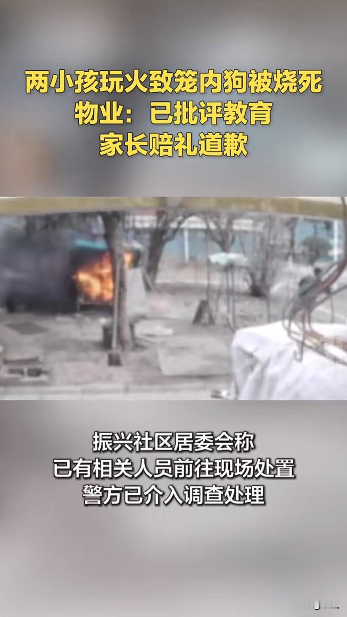 太窒息了。一条养了七年的萨摩耶,在江苏连云港一个小区里,被两个男孩用烟花活活烧死在笼中。 监控上的时间,一秒一秒地走。中午12点34分50秒,两个男孩来到狗笼边。其中一个,把手里的烟花点燃,扔了进去。看见笼子里飘出轻烟,两个人跑开了。 不到一分钟,他们又回来。两个人凑在一起,又点着一支烟花。这次烟更大了些,他们没有再扔。穿黑衣服的男孩,转身拿着烟花,去追小区里的一只鸡。穿白衣服的男孩留在笼子边看,突然喊了一声:“着火了!” 一切都来不及了。狗笼里用来挡风的布,非常易燃。12点37分,浓烈的黑烟升起,大火瞬间吞噬了铁笼。视频里能听到狗狗的惨叫,但火势太快,没人能救它。 狗主人姜女士一家,心都碎了。这不是宠物,是家人,养了整整七年。狗很乖,住在小区那个固定的笼舍里,很多邻居小孩都喜欢它,常给它喂食。也正因为这样,这么多年,邻居和物业从没明确说过不许他们养在这里。 事情发生后,警察来了。两个男孩的家长商量出一个方案:愿意两家一起赔6000块钱,或者赔一只新的狗。在他们看来,这大概就是“处理完了”。 但姜女士一家不接受。钱和新的狗,都换不回七年的陪伴。他们提出一个要求:希望两个孩子的家长,在小区所有业主都在的微信群里,公开道歉。 这个要求,让这件事变得不一样了。它不再是一个能用钱抹平的“损失”,它关乎承认错误,关乎对一条生命的尊重。有网友说,从那个黑衣男孩点火后还能若无其事去追鸡的行为看,他可能根本没意识到自己做了什么。 小区物业后来有个说法,说在公共区域搭狗舍是违规的。但这句事后才出现的规定,抹不掉那只狗曾经真实存在过、又被痛苦夺走的事实。悲剧发生前,这个笼子在那里好几年,是一个被默许的存在。 现在最新的消息是,街道和派出所还在协调处理。但“协调”两个字,太轻了。它协调不了一条生命在恐惧和疼痛中消失,也协调不了一个家庭失去成员的感情。 这件事最让人难受的地方,是那种巨大的割裂感。一边是视为家人的深厚感情,另一边却似乎是“不过是条狗”的轻描淡写。家长愿意赔钱,觉得已经负责了。但真正的负责,是不是应该包括让孩子明白,他们夺走的是什么? 那条狗,也许曾吃过这两个男孩手里的零食。它看着他们在小区里长大。最后,却死于他们手中的烟花。 一场大火,烧出一个所有家长都必须面对的问题:我们该怎么教会孩子,对生命抱有起码的敬畏?那句被要求的公开道歉,其实是在要一个态度,一个划清对错的底线。 如果这件事最后悄无声息地“私了”了,那留下的,就是一个可怕的示范:有些错误,是有价码的;有些痛苦,是可以被购买的。 你觉得,这件事里,狗主人坚持要的那句公开道歉,重要吗?