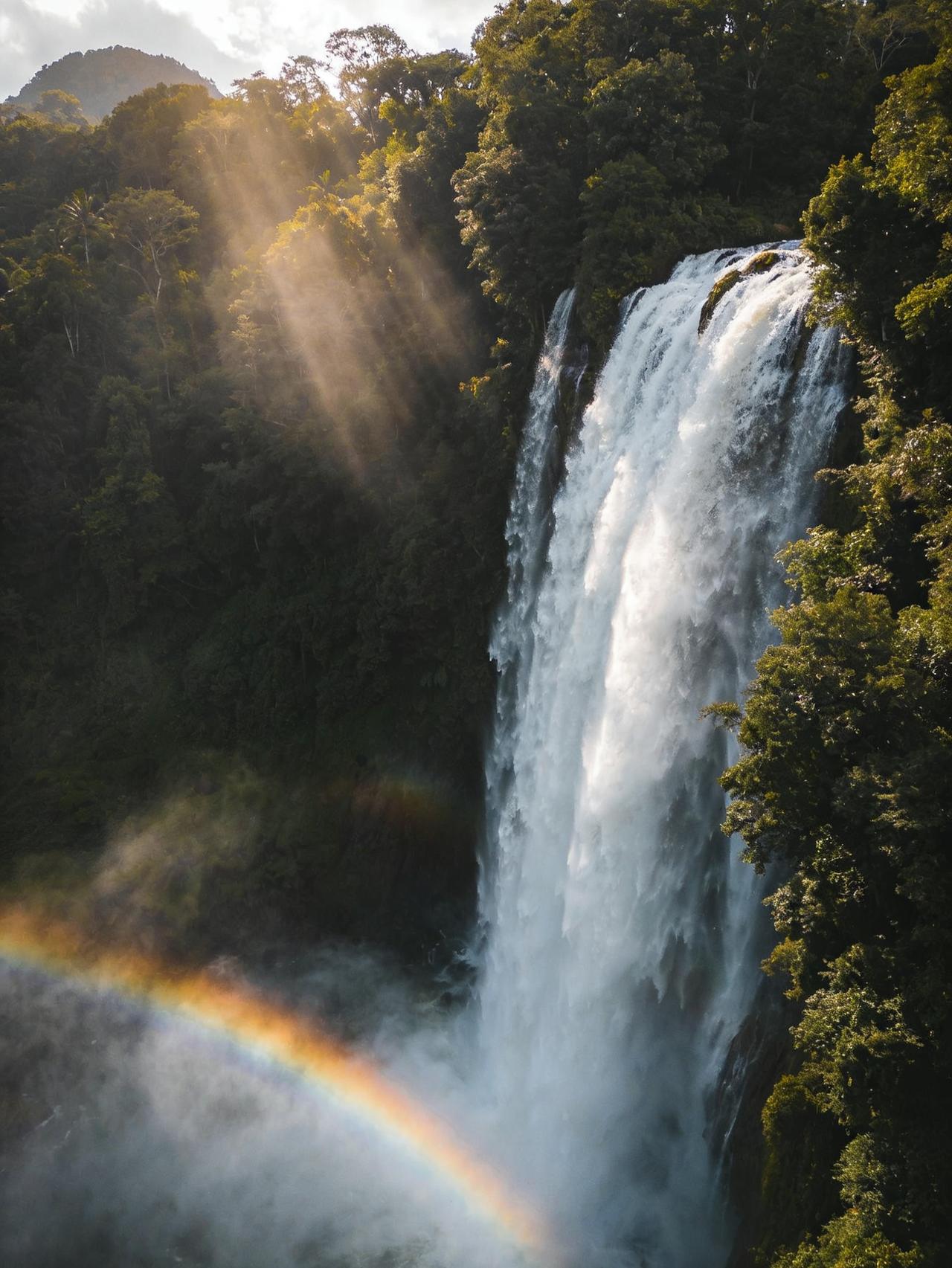 下列三张山间瀑布壁纸供欣赏: 1. 雨林巨瀑:磅礴水流劈开葱郁雨林,轰鸣声响彻山谷,水雾折射出的彩虹为原始秘境增添了梦幻色彩,仿佛能隔着屏幕感受到扑面而来的湿润水汽。 2. 秋谷叠瀑:秋日将山谷晕染成暖棕色调,瀑布顺着层叠岩石蜿蜒而下,像是在红褐色画布上晕开的银白丝线,热烈又温柔。 3. 雪岭静瀑:雪山融水裹挟着清冽寒意,从冰崖缓缓坠入翡翠色深潭,冷杉与积雪将天地晕染成清冷的浅色系,治愈又安宁。