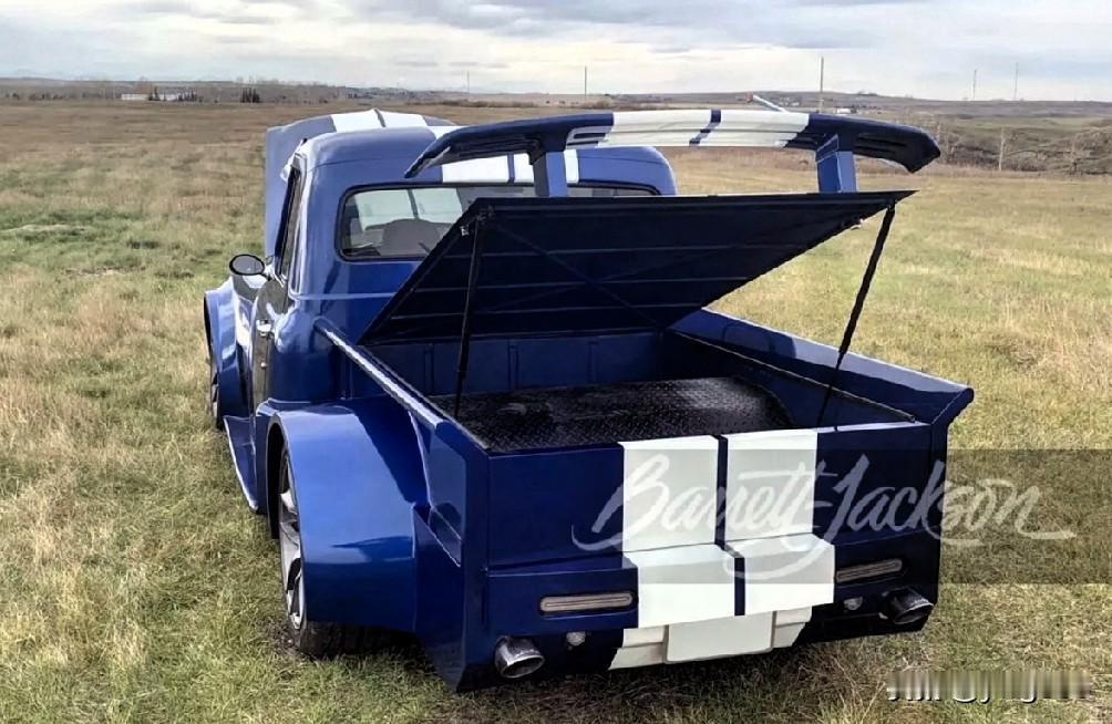 在拍卖会上,你可以看到世界上一些最精美、最昂贵的汽车。当然,也能看到一些世界上最奇特的车型。例如,这辆福特野马/F系列皮卡。这辆奇特的改装车最近找到了新主人。它融合了美国人最喜欢的元素:一辆造型炫酷的肌肉车,却有着皮卡的外形。 这基本上是两全其美的结合。从正面看,它看起来很像一辆野马跑车。但绕着车身走一圈,你最初的印象就会被彻底颠覆。这辆造型独特的半跑车半卡车名为 GT-100,它是由一辆 2007 款福特野马 GT 和一辆 1955 款福特 F-100 皮卡车“联姻”而成的。 GT-100 的引擎盖下搭载了一台来自第四代野马的 4.6 升 V8 发动机。它可输出 300 马力(304 公制马力),这比当时 F 系列皮卡车的 Y 型 V8 发动机的动力还要强劲。五速手动变速箱将动力传递到后轮。正是这一点让它更像一辆野马跑车,而不是一辆卡车。 福特野马 经典车拍卖 这辆车注册为 1955 款福特 Specon/Recon,它是一辆完全定制的展车,车身全部由钢材打造,这与通常使用碳纤维或玻璃纤维进行改装的复古车型截然不同。