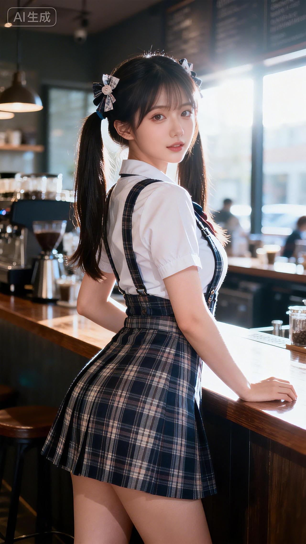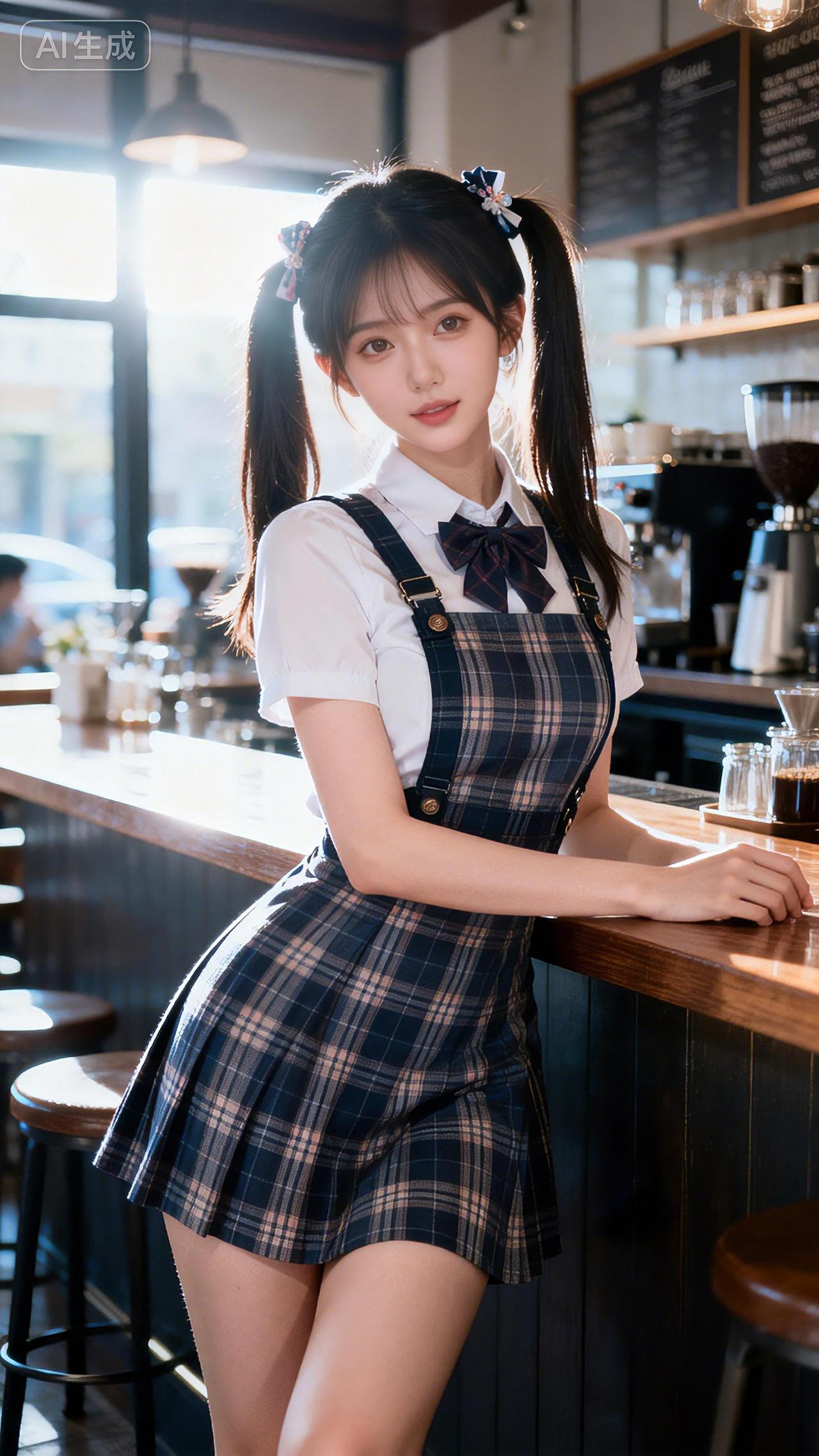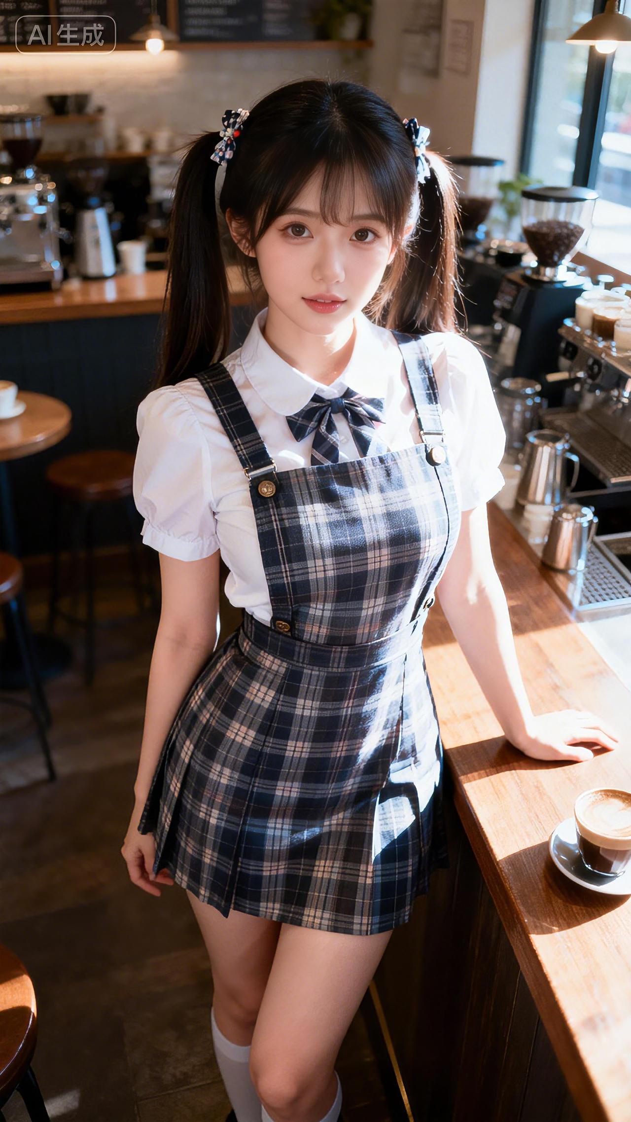 咖啡香里度晨光,格子裙边故事长。豆包壁纸