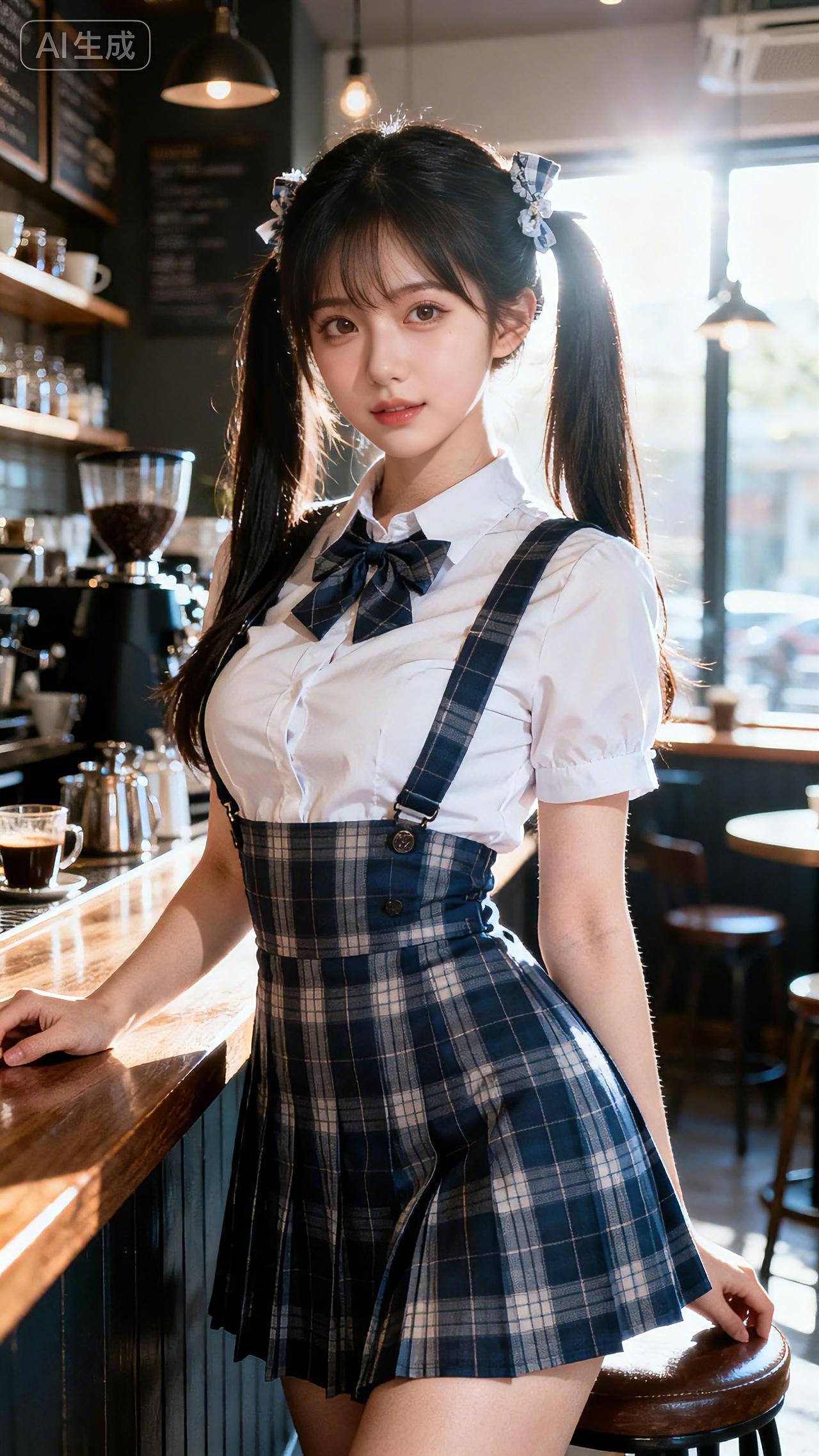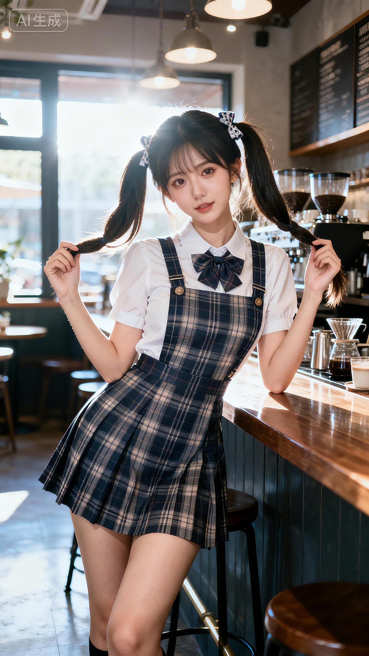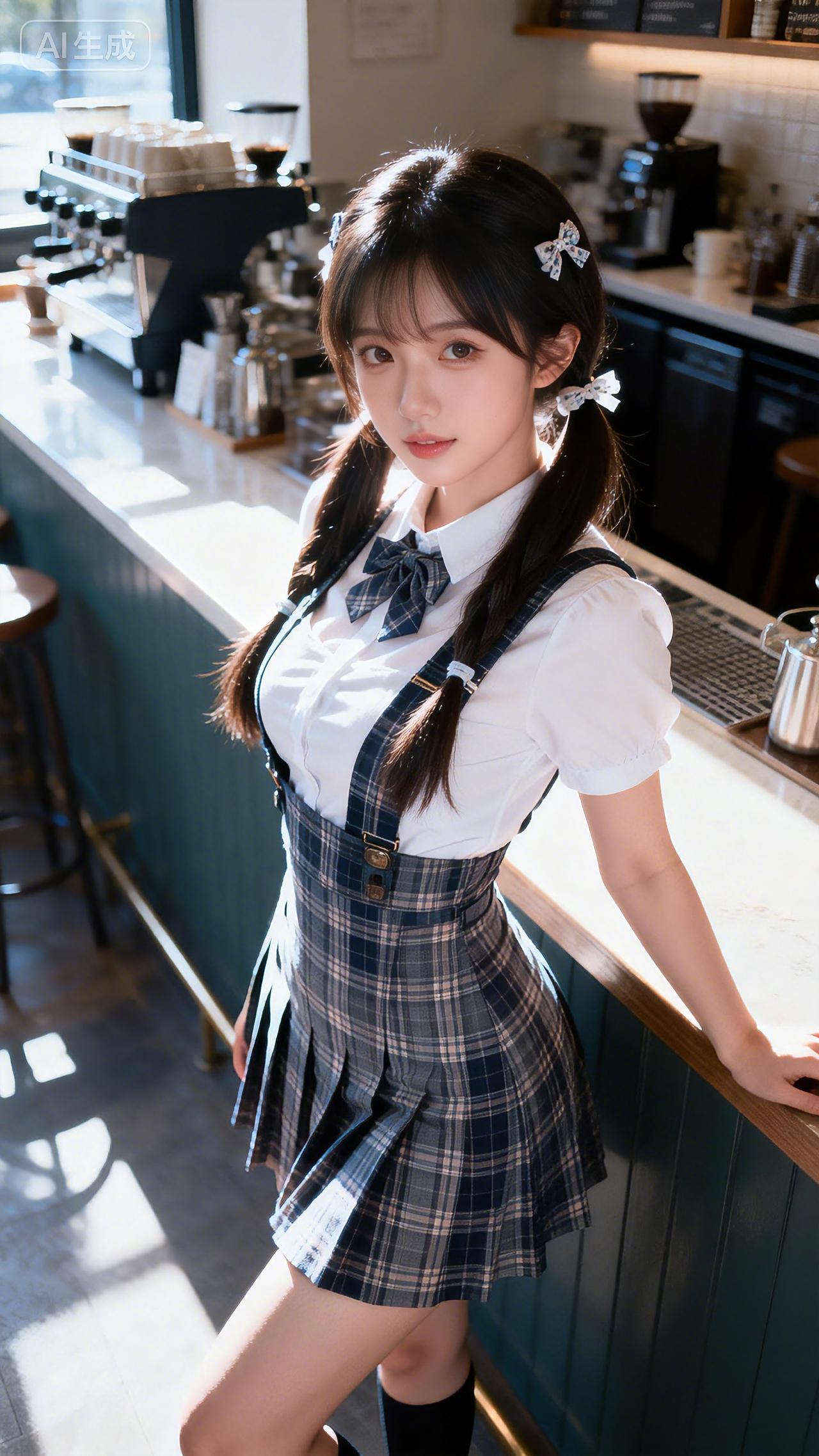 咖啡香里度晨光,格子裙边故事长。豆包壁纸