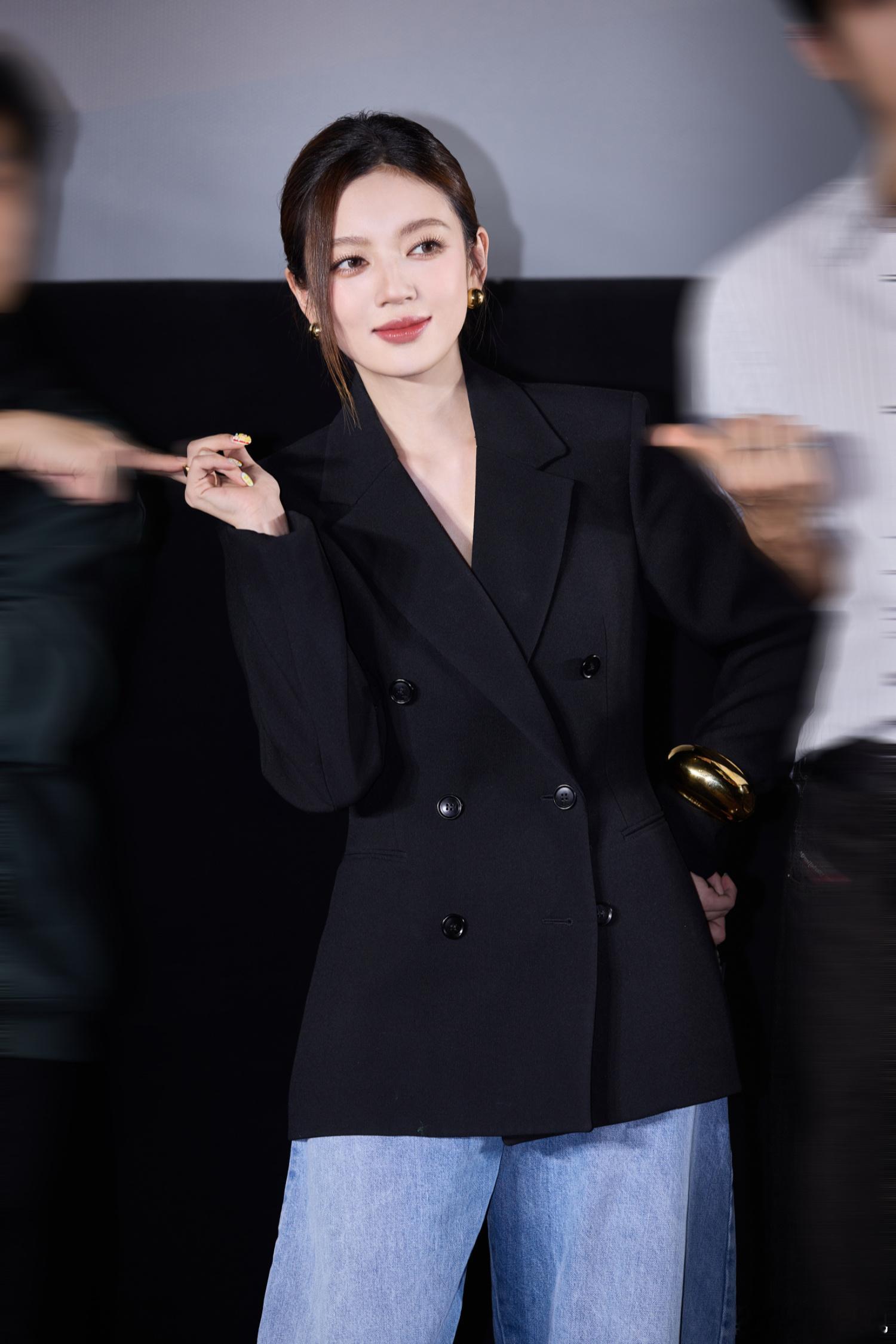 张天爱跟素人合影,胯真的好宽,大宅院似的