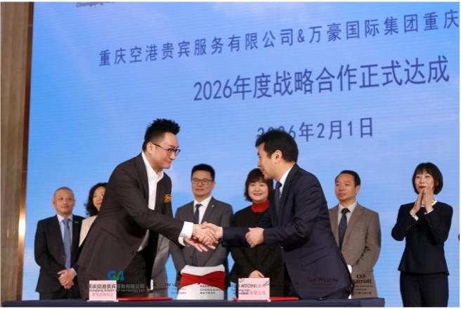 重庆空港贵宾服务有限公司与万豪国际集团重庆区域管理酒店 2026年度战略合作媒体发布会成功举行 共启“空中至城中”高端旅程新篇章 2026 年 2 月 1 日,重庆空港贵宾服务有限公司与万豪国际集团重庆区域管理酒店2026 年度战略合作媒体发布会在重庆江北国际机场圆满举行。重庆空港贵宾服务有限公司董事长殷德俊万豪国际集团大中华区云南、贵州及重庆区域总经理、重庆解放碑威斯汀酒店总经理帅侠先生等有关人士参会。 此次合作以重庆空港贵宾服务有限公司与万豪旗下重庆核心区六家酒店为载体,旨在重构高端旅行的时间维度与空间叙事——将传统意义上旅途中的“间隙”与“等待”,转化为完整、私密且富有仪式感的序章,宣告城市高端出行体验范式的一次深刻转向。 发布会现场,重庆空港贵宾服务有限公司董事长殷德俊先生与万豪国际集团大中华区云南、贵州及重庆区域总经理、重庆解放碑威斯汀酒店总经理帅侠先生共同为合作揭幕。这不仅是双方服务资源的对接,更是在全球化语境下,对“在地化精致体验”边界的一次关键性拓展。 “我们相信,真正的高端,在于对‘抵达’这一概念的重新定义。”帅侠先生在致辞中阐释,“此次合作,是万豪服务哲学的一次空间外延——我们不仅提供居停之所,更致力于塑造一段连贯、从容且充满掌控感的完整旅程轨迹。与空港贵宾服务的融合,正是为了让非凡体验,精准始于您踏足重庆的‘第一刻’。”此次合作深度链接了贵宾通道的静逸通行与两舱贵宾室的卓然礼遇,其核心在于消弭交通枢纽与目的地酒店之间的感知边界,构筑一个流畅、闭合的高端体验循环。 揭幕礼成后,与会嘉宾及到场媒体在双方引领下,亲身步入即将启用的贵宾服务沉浸式体验。这不仅是流程的预览,更是直观呈现了未来宾客将享有的高效流程、私密环境与宁逸氛围,将合作蓝图具象转化为可感知的服务场景。 此番战略结盟,标志着高端服务业态正从单一的节点服务,转向对“旅程全链路体验”的系统性编织。对万豪国际集团旗下重庆区域的管理酒店而言,这是继多品牌矩阵落子后,于服务纵深层面巩固其在渝战略高地的关键之举,展现了其以持续创新定义市场、而非仅仅回应市场的远见,并助力重庆构建更具吸引力的国际高端旅行目的地;对于重庆贵宾公司而言,此次合作不仅是“机场贵宾+高端酒店”的首创示范,更是两个具有影响力的服务品牌基于理念共鸣的双向奔赴,为贵宾公司的多元化链接提供了遵循,为助力国际航空枢纽建设增强了力量。 为彰显多元品牌底蕴与款待匠心,万豪国际集团旗下重庆区域六家管理酒店特别结合各品牌文化与定位,为本次发布会量身定制了多元化主题茶歇。从经典优雅的欧陆风味到融入本地灵感的创意茶点,每一款皆诠释了不同品牌的风格精髓,为现场嘉宾带来了一场融合视觉与味觉的沉浸式感官体验,也成为万豪“个性化款待”理念的生动注脚。 展望未来,双方此次协同所建立的范式,或将启发更多城市高端服务生态的融合创新,共同推动高端出行文化迈向更注重内在连贯性与精神体验的新阶段。