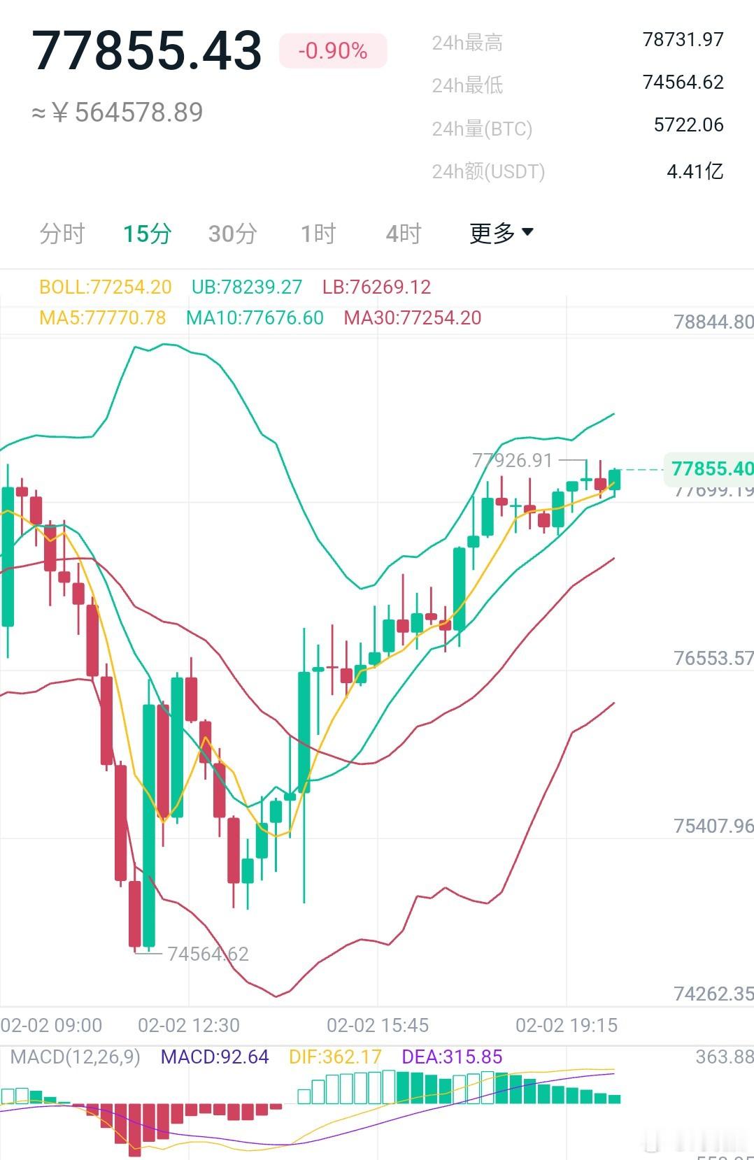 短期成功抄底,顺利到达7.8万关口