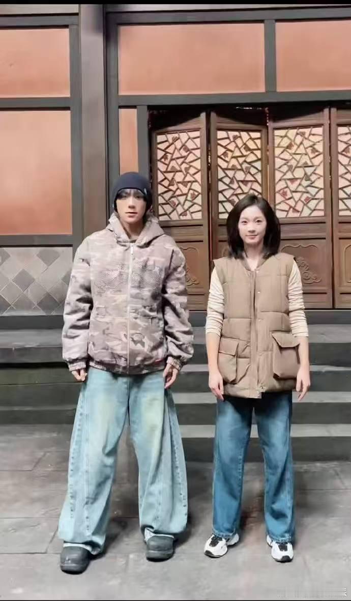 张天爱跟素人合影,胯真的好宽,大宅院似的