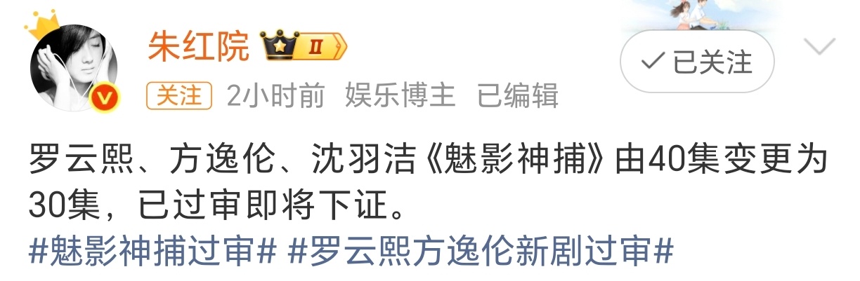 罗云熙《魅影神捕》已过审即将上线!期待熙哥的黎斯