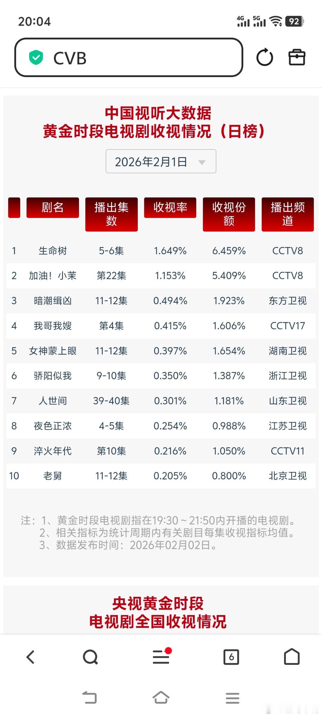 弟弟挨最重的打读最准的心2月1日cvb收视日报生命树1.649,酷云1.8623,系数0.885
