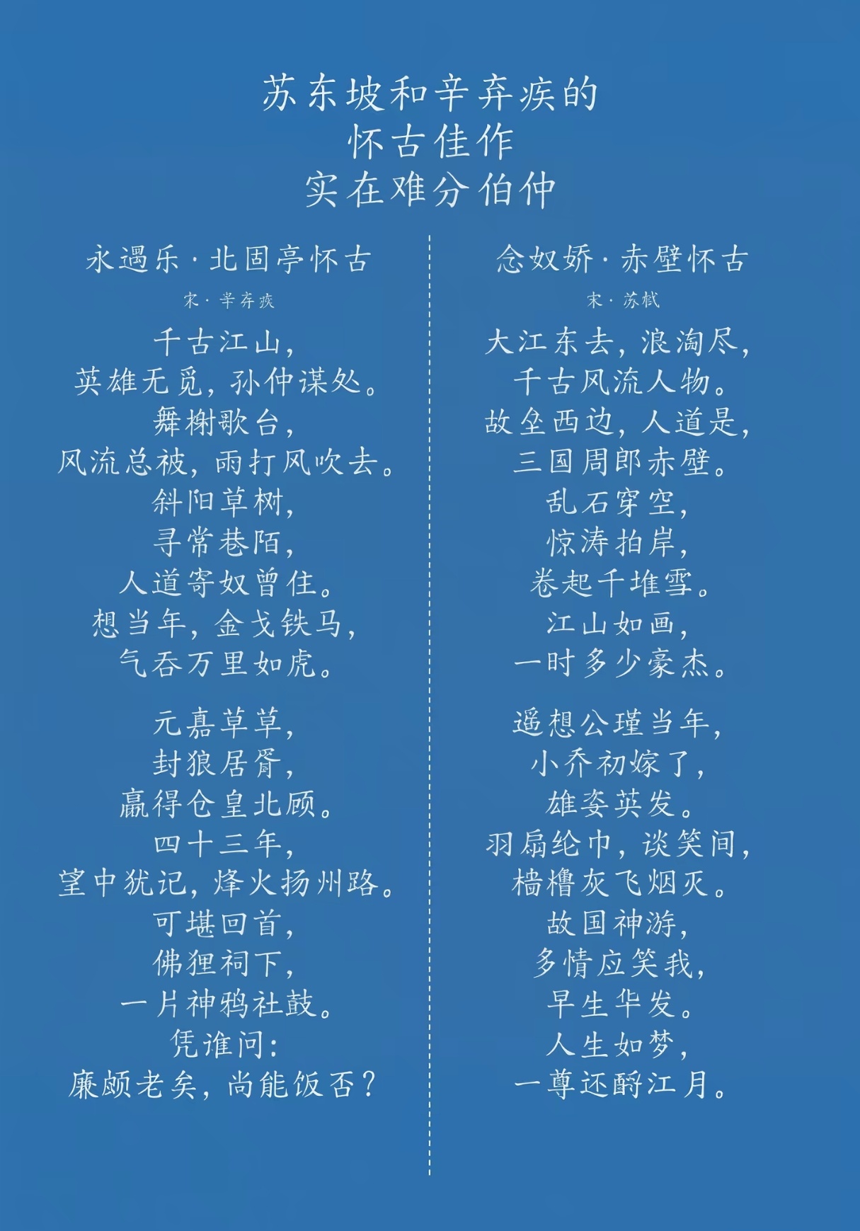 有没有专业的人分析一下,辛弃疾和苏东坡的这两首怀古诗,哪个造诣更高一些?